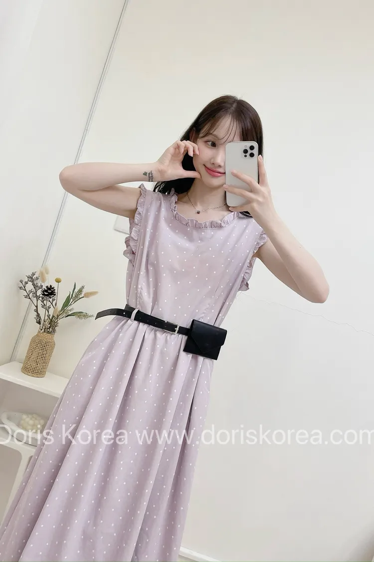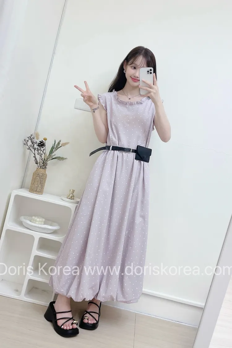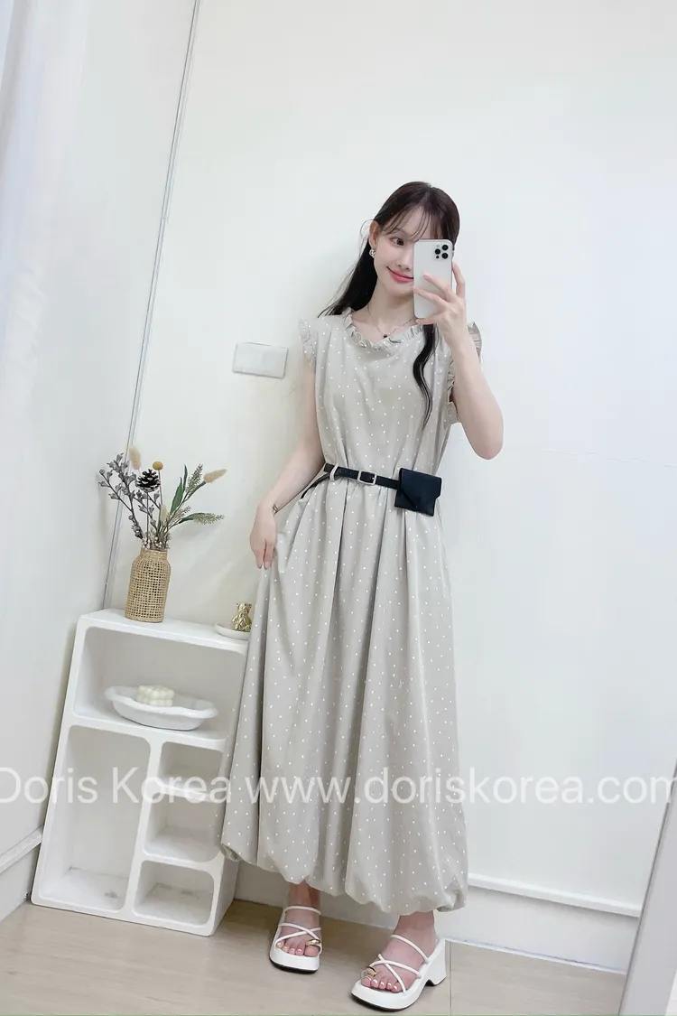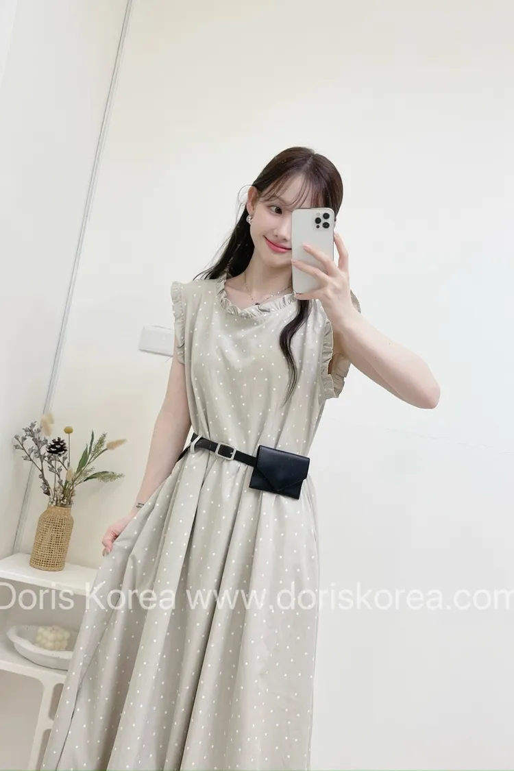 點點附腰包荷葉背心洋裝