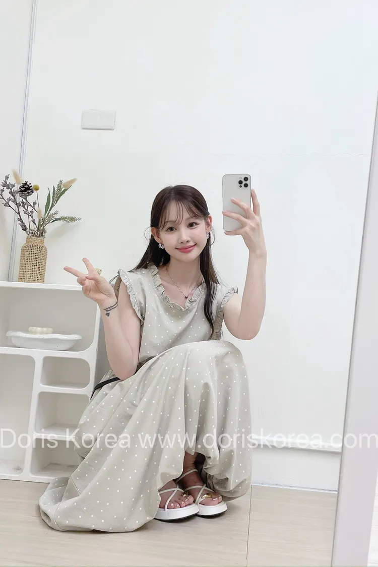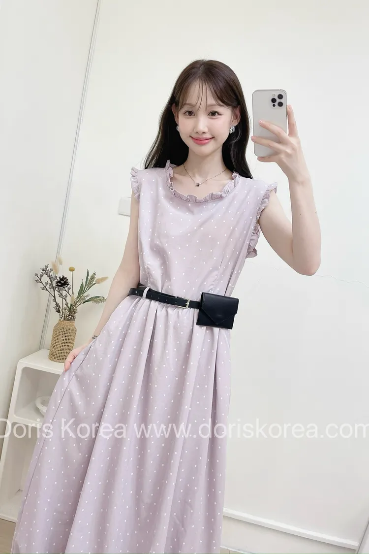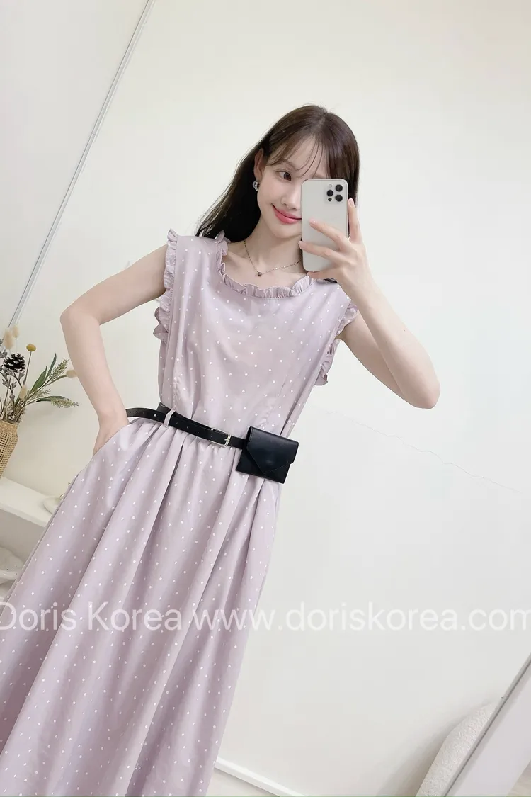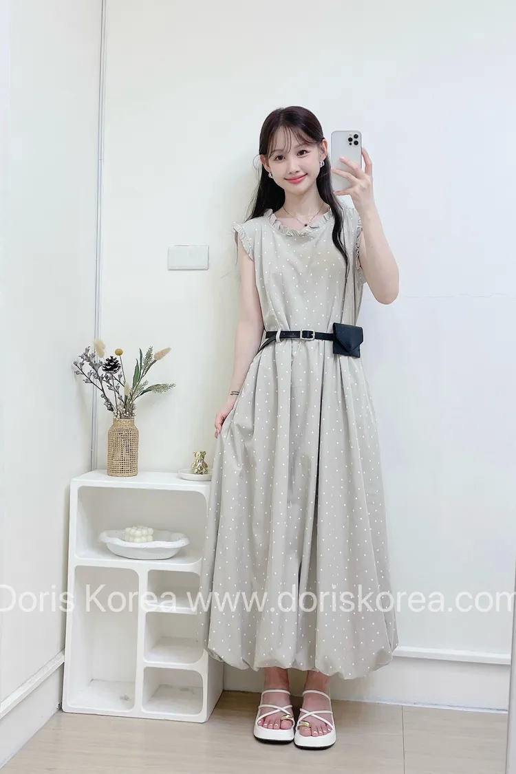 點點附腰包荷葉背心洋裝