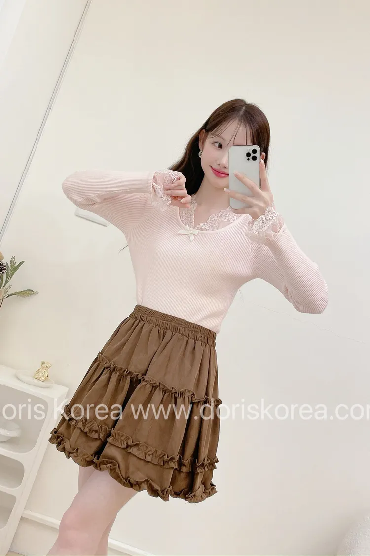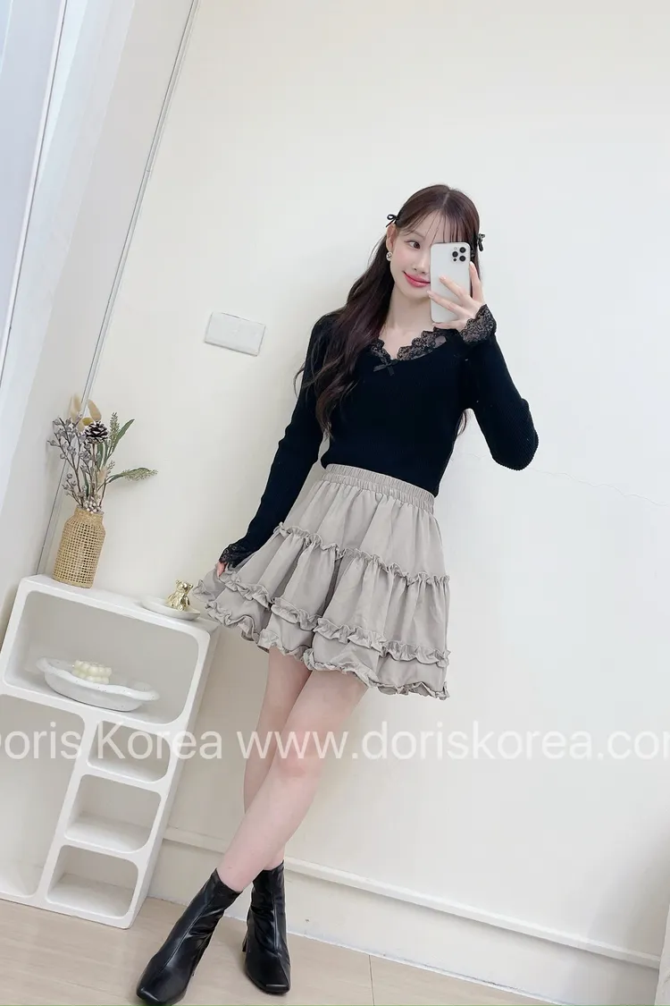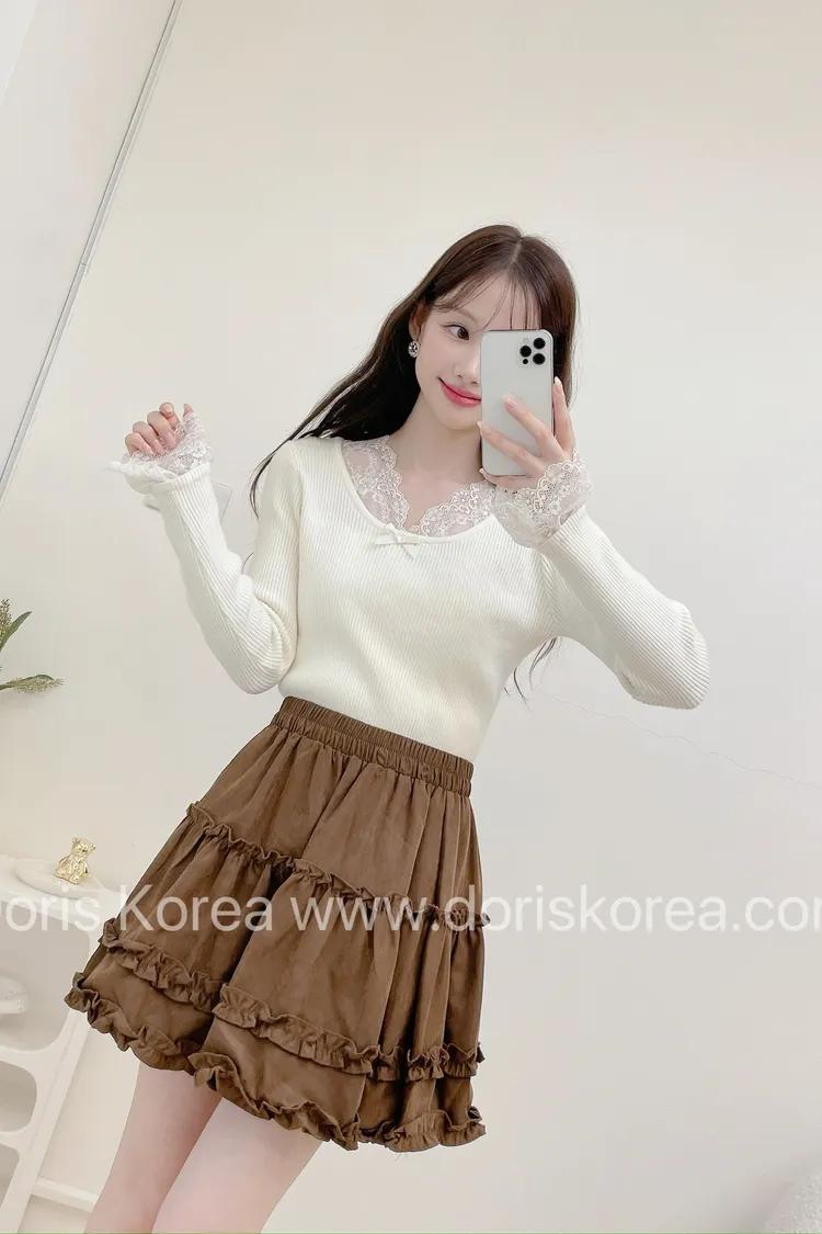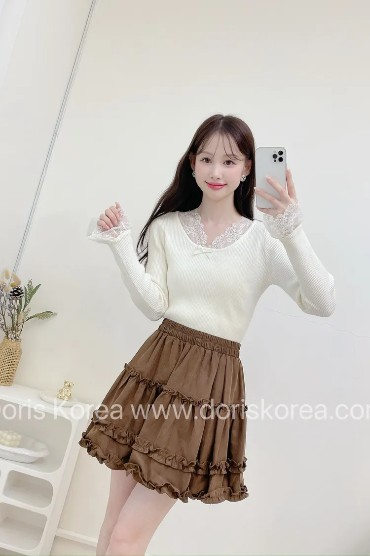 蛋糕荷葉麂皮短裙