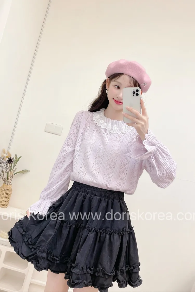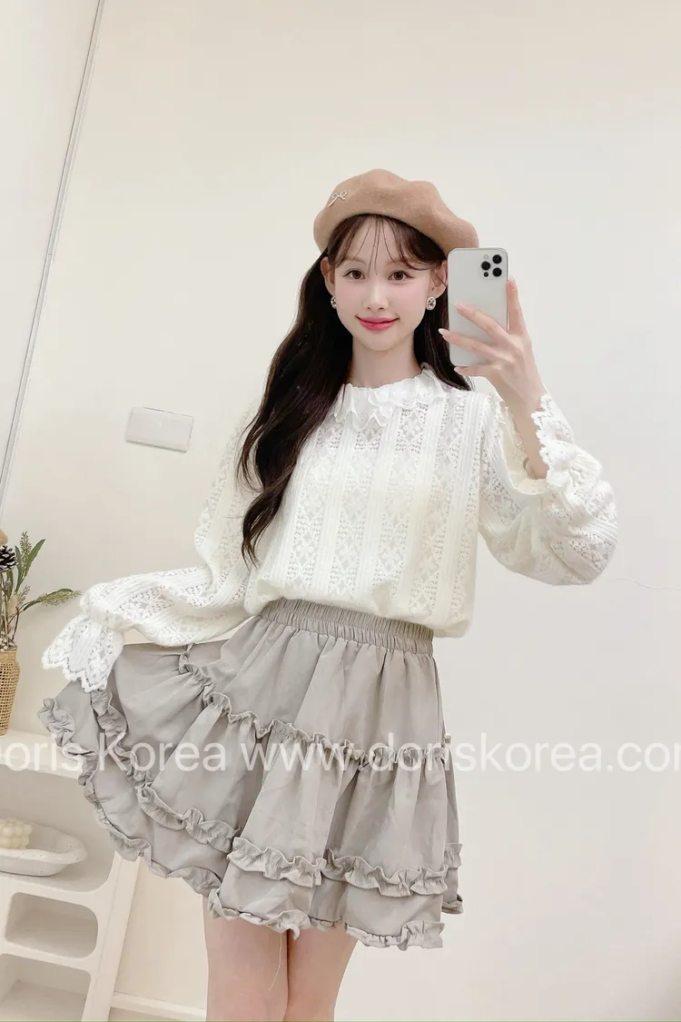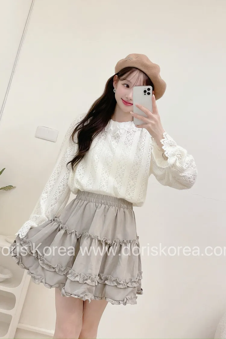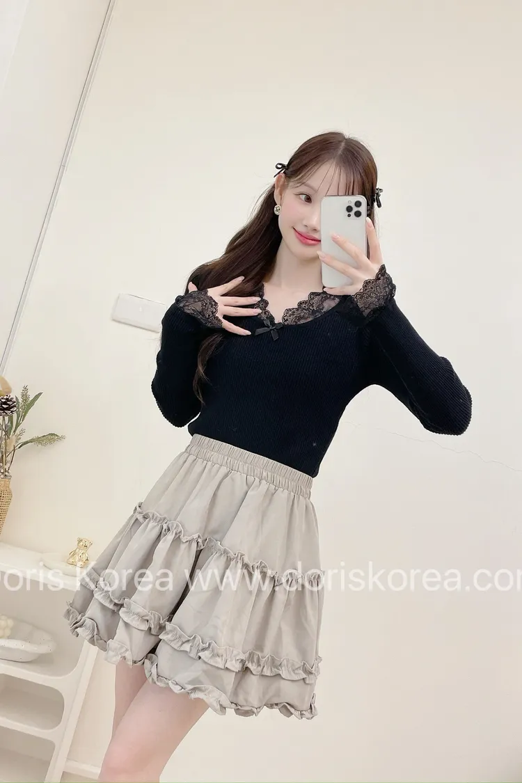 蛋糕荷葉麂皮短裙