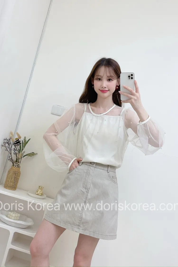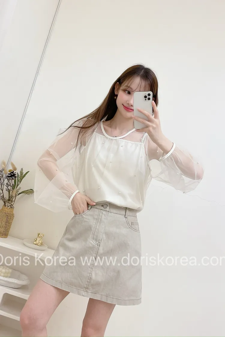 釘珠罩衫+細肩帶(杏)