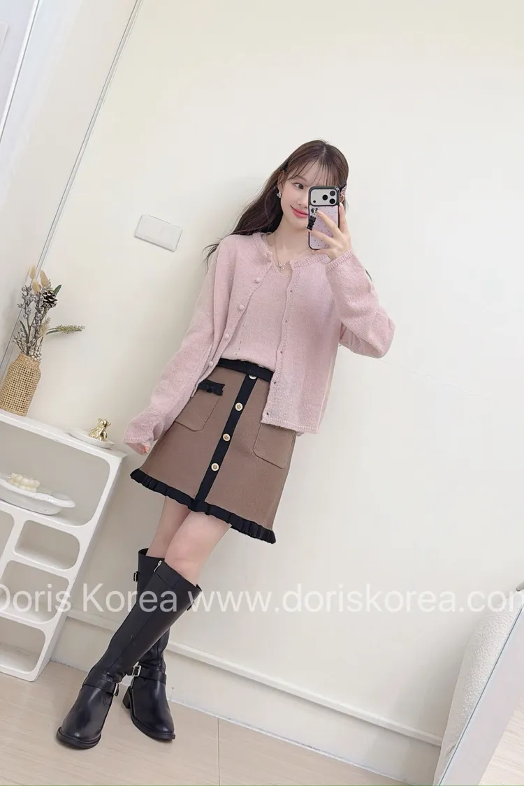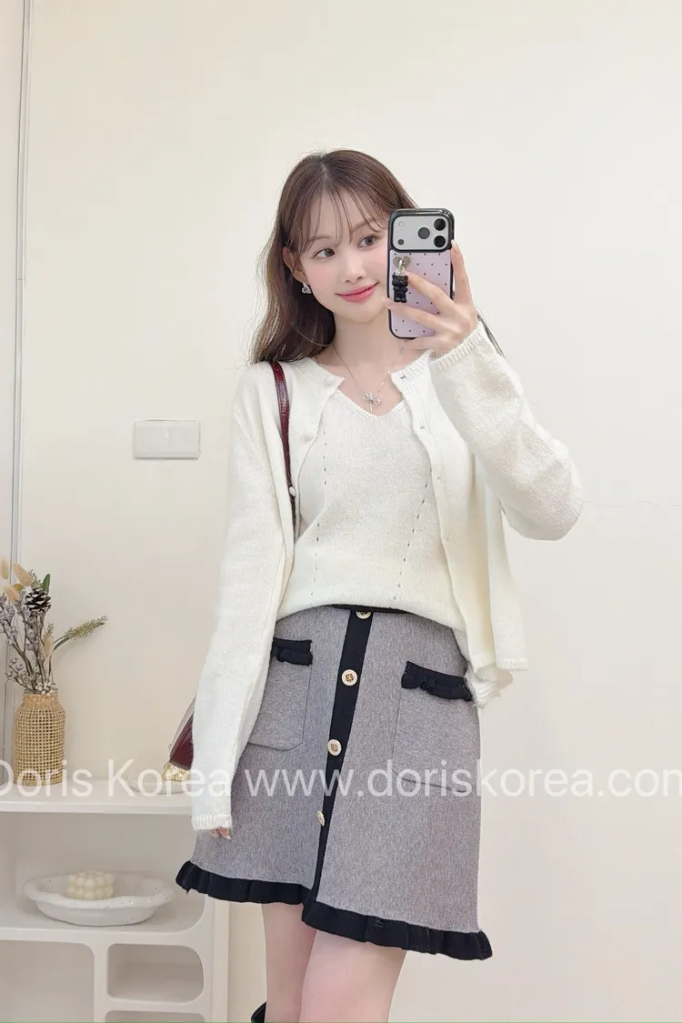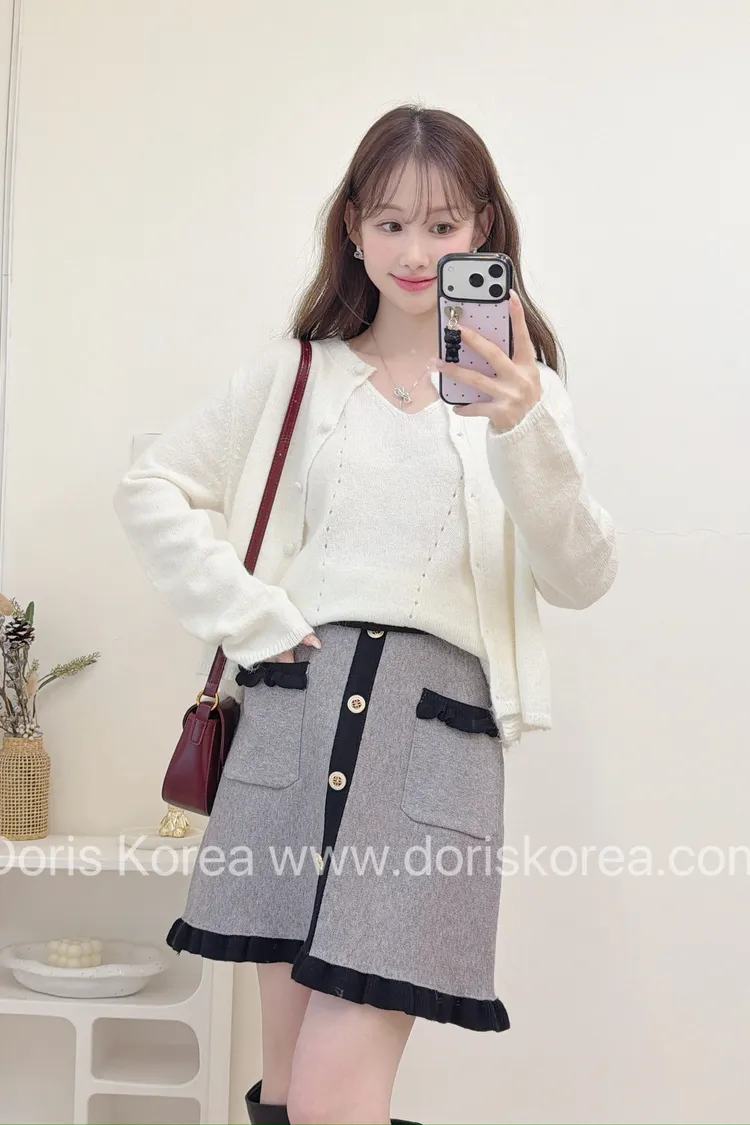 小香荷葉邊配色短裙