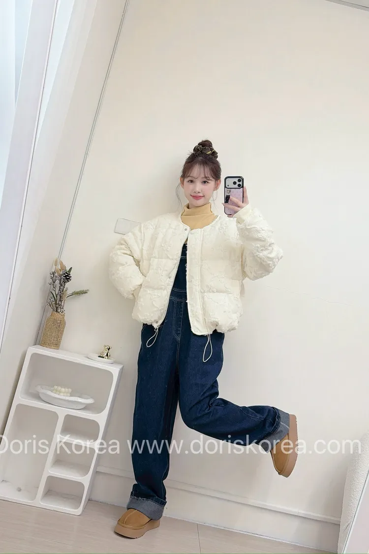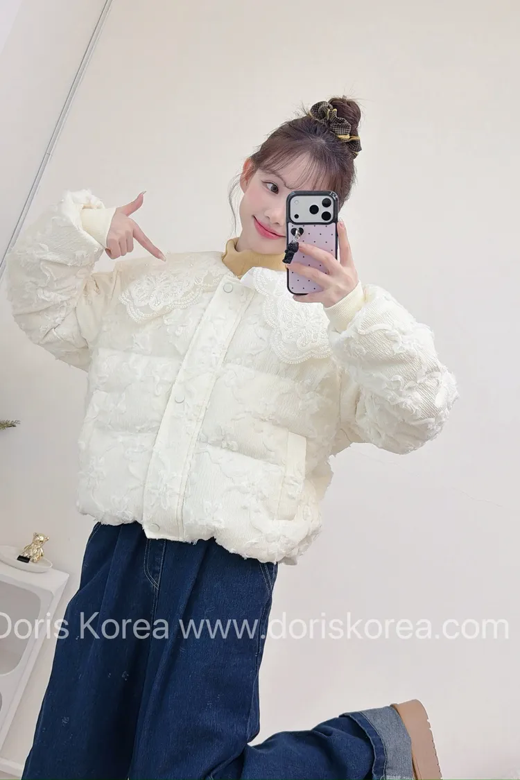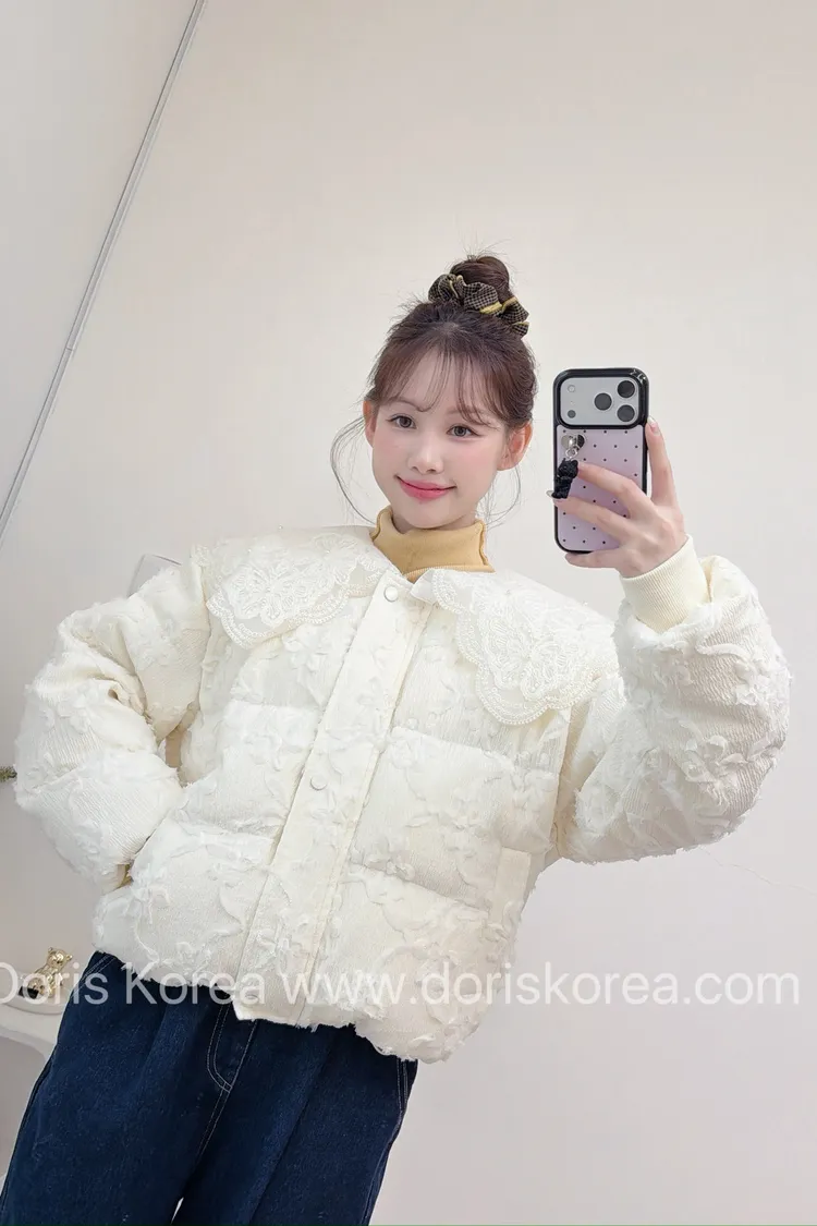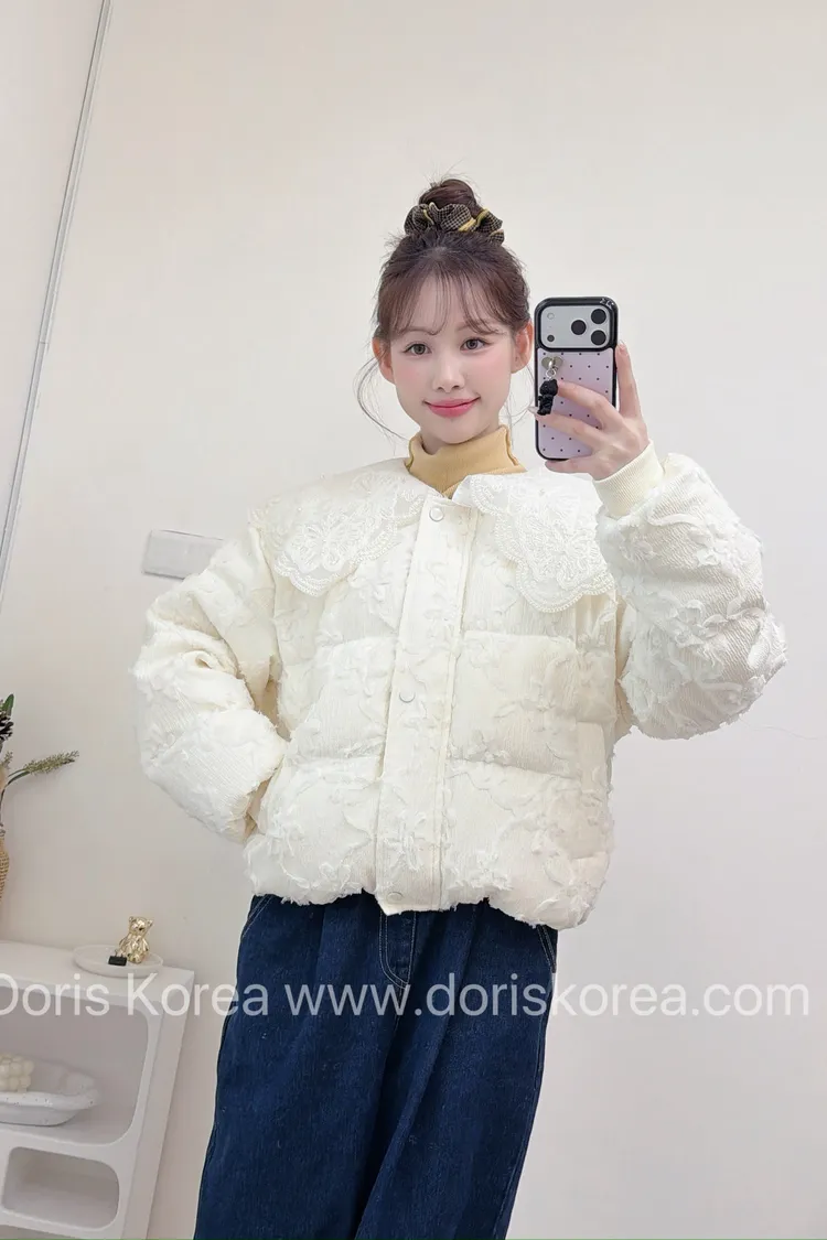 鴨絨寶寶領蕾絲外套(杏)