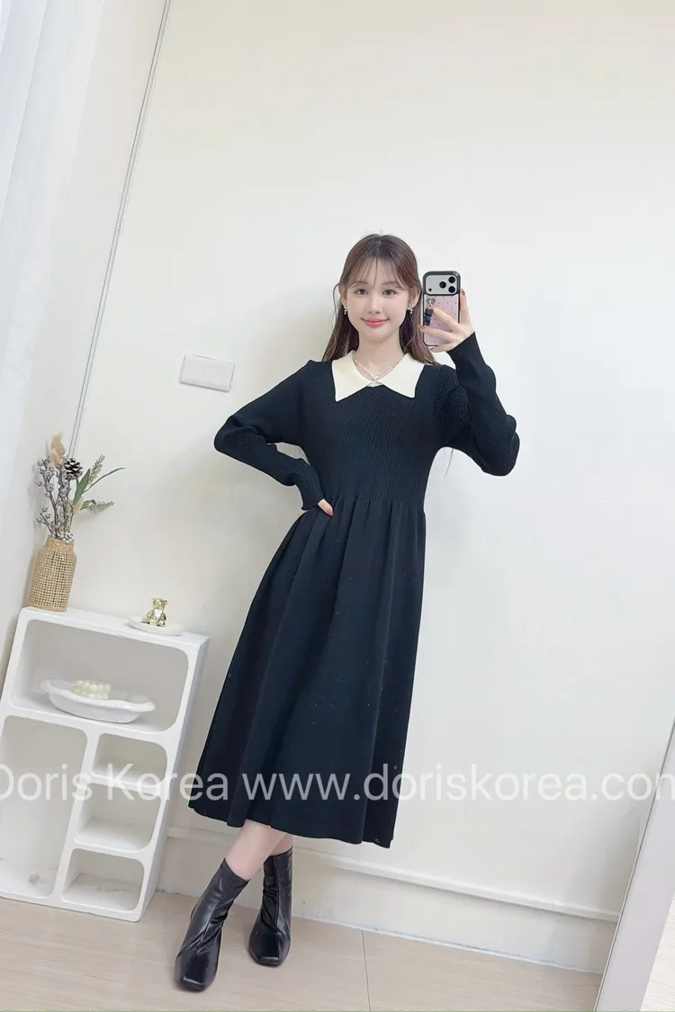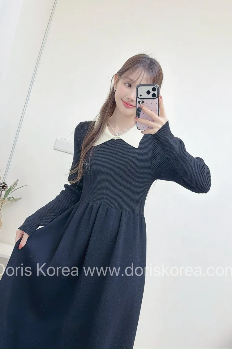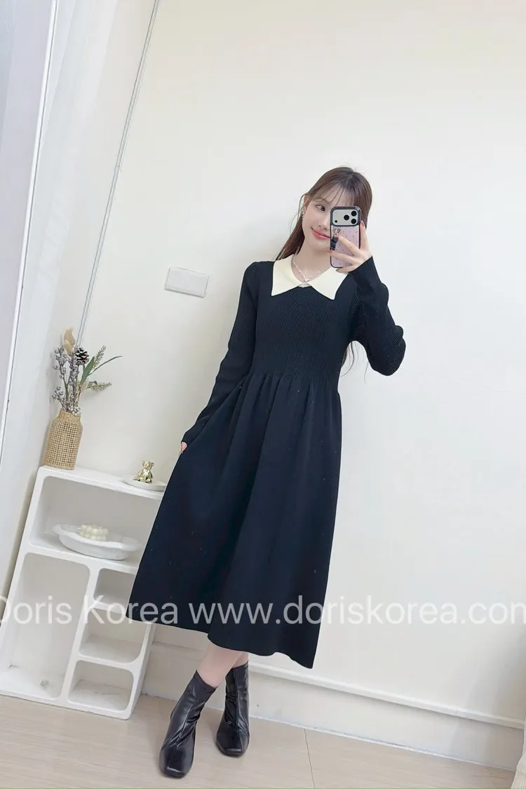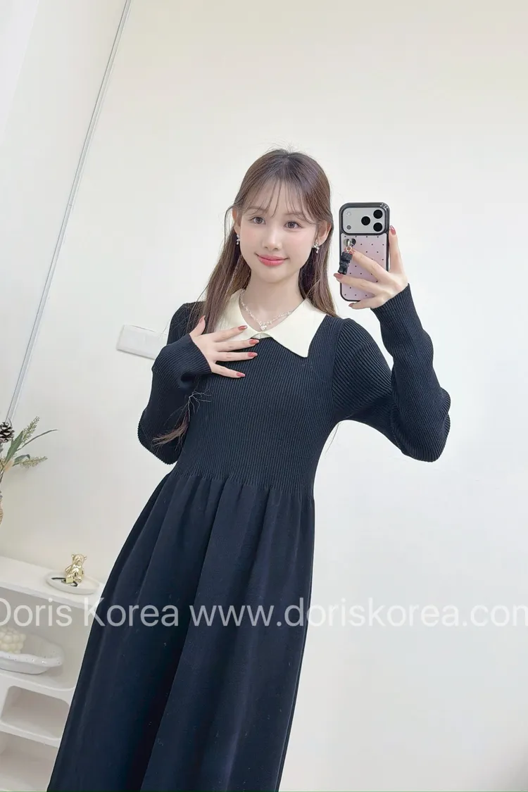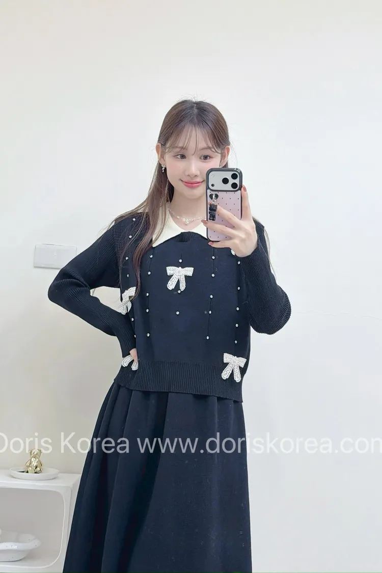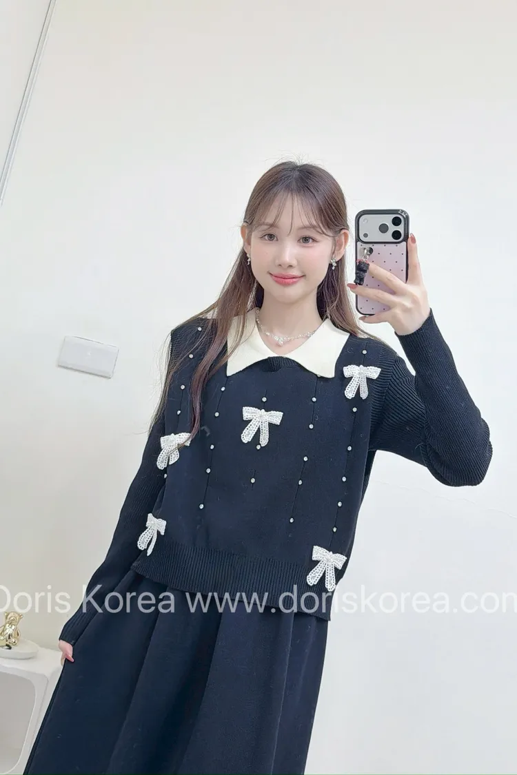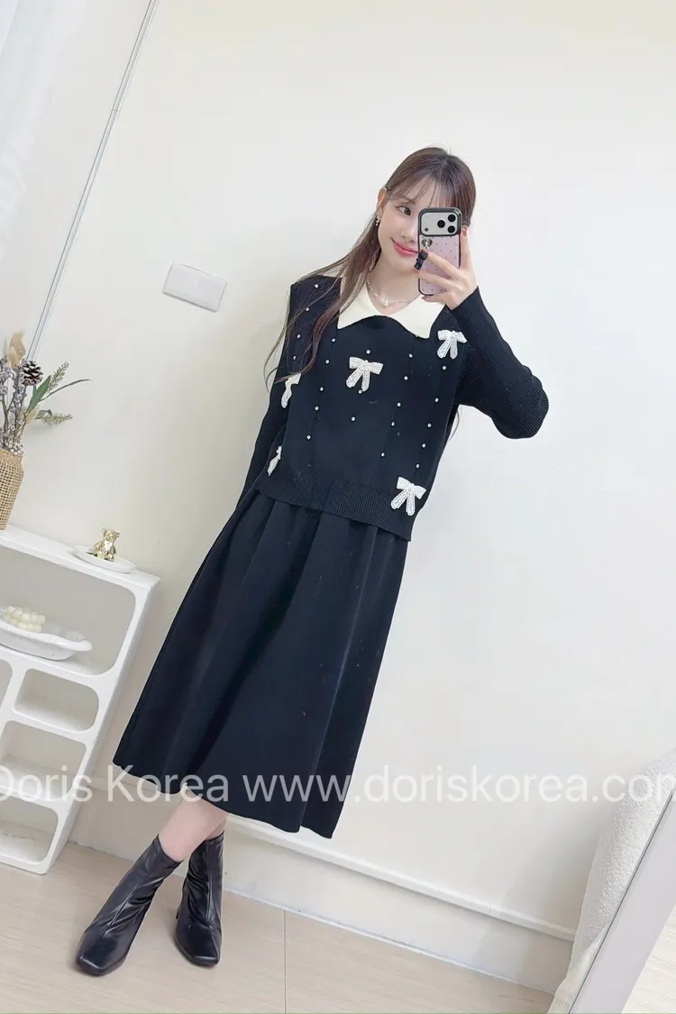 蝴蝶結背心+小香領襯衫洋裝(黑)