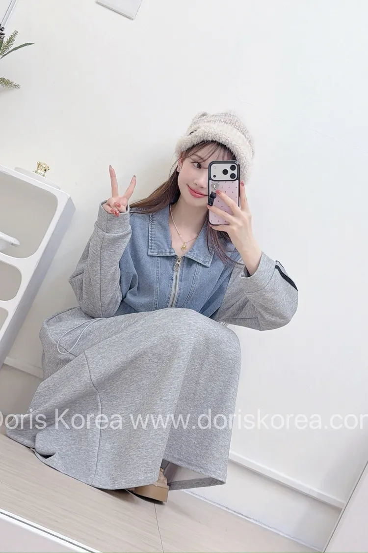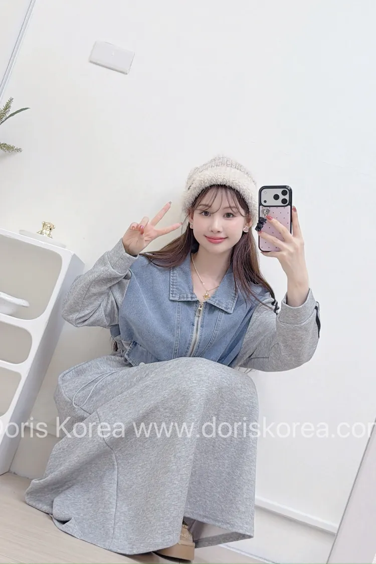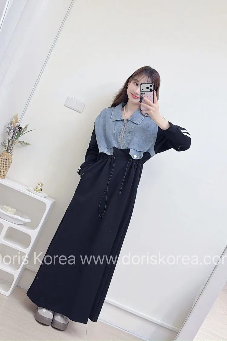 牛仔拼接棉料洋裝