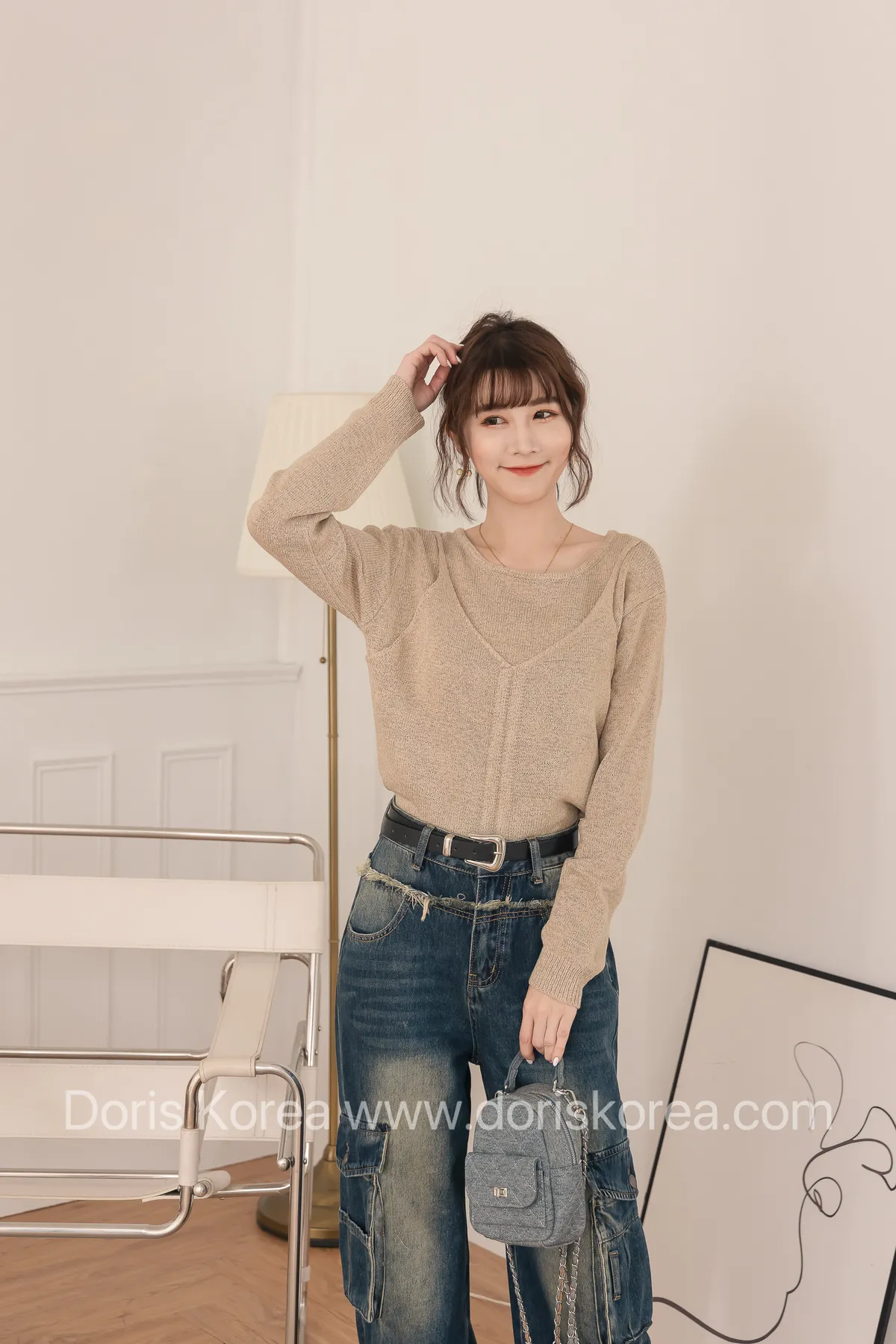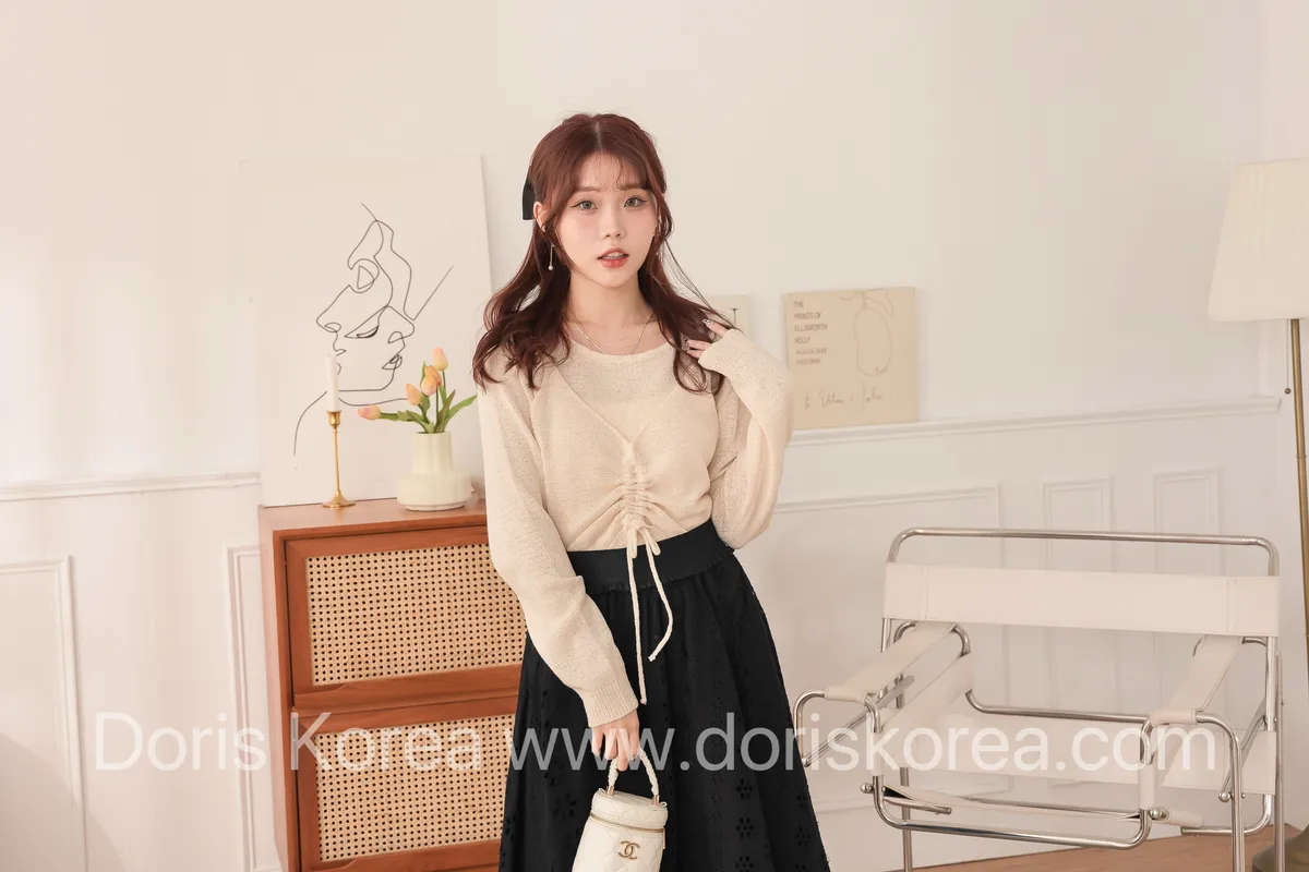 假兩件感抽繩針織衫