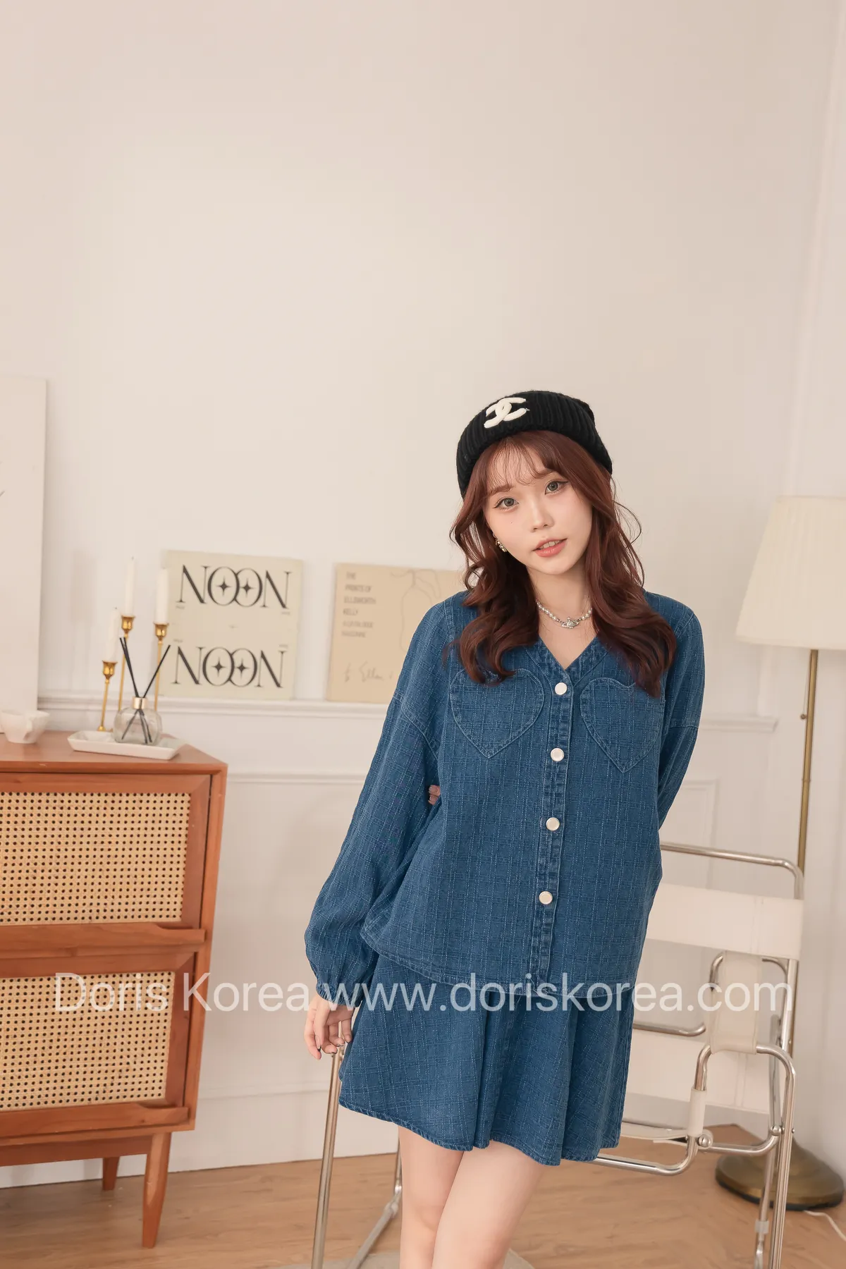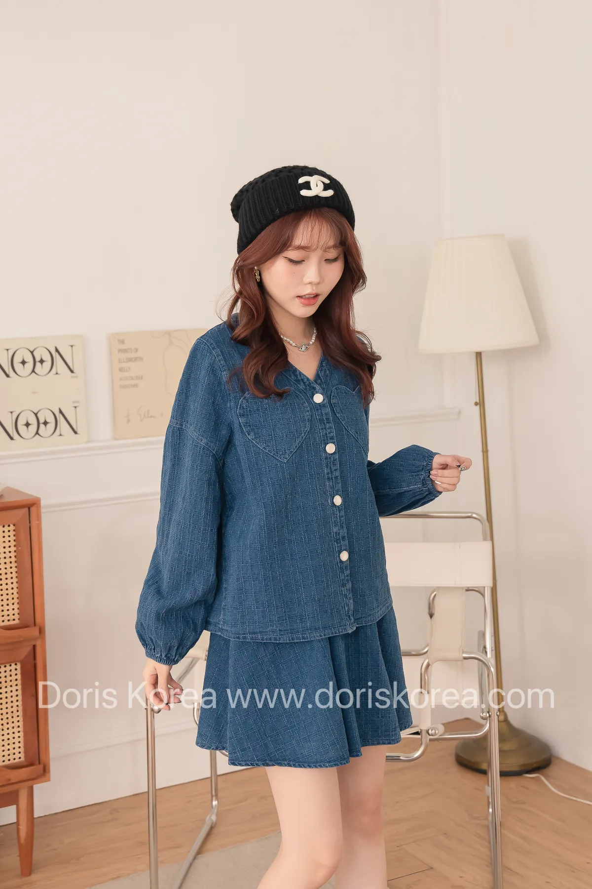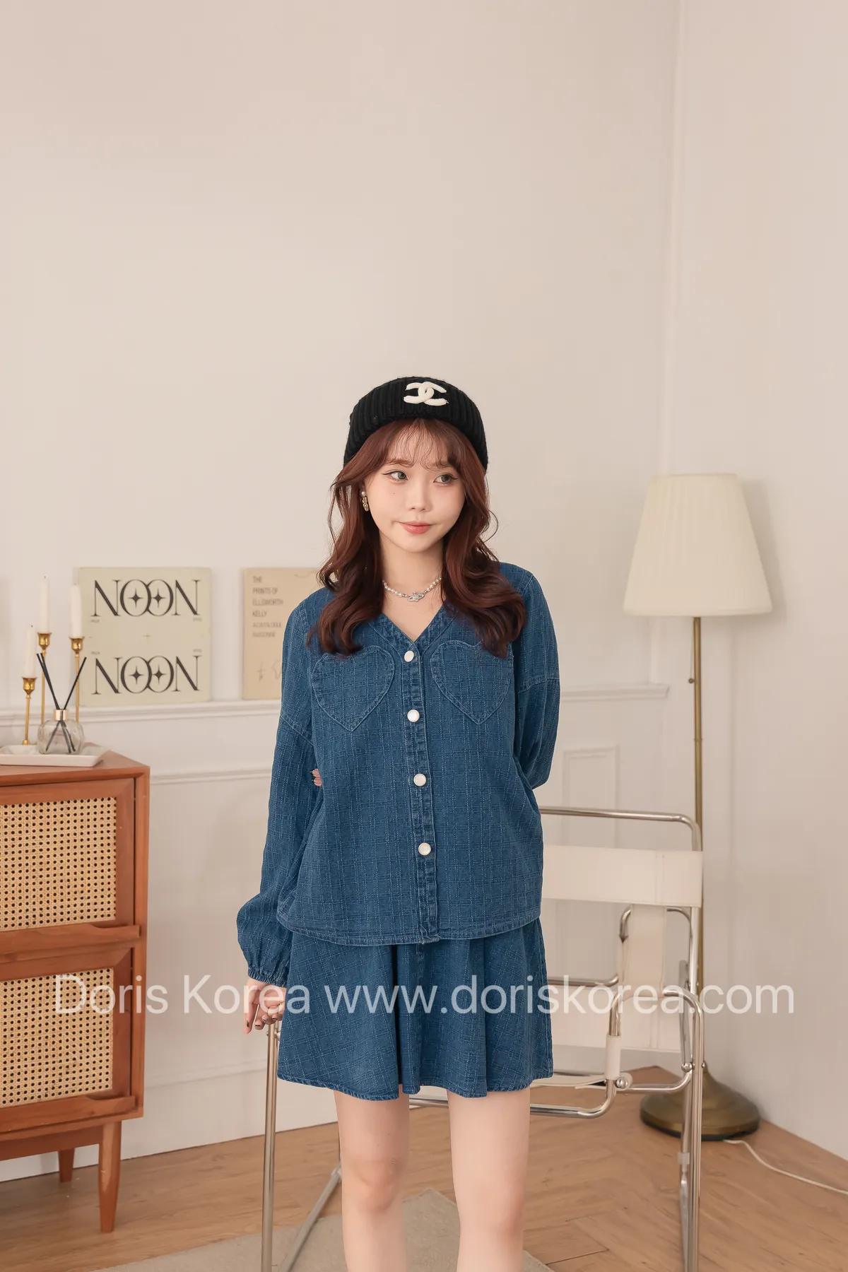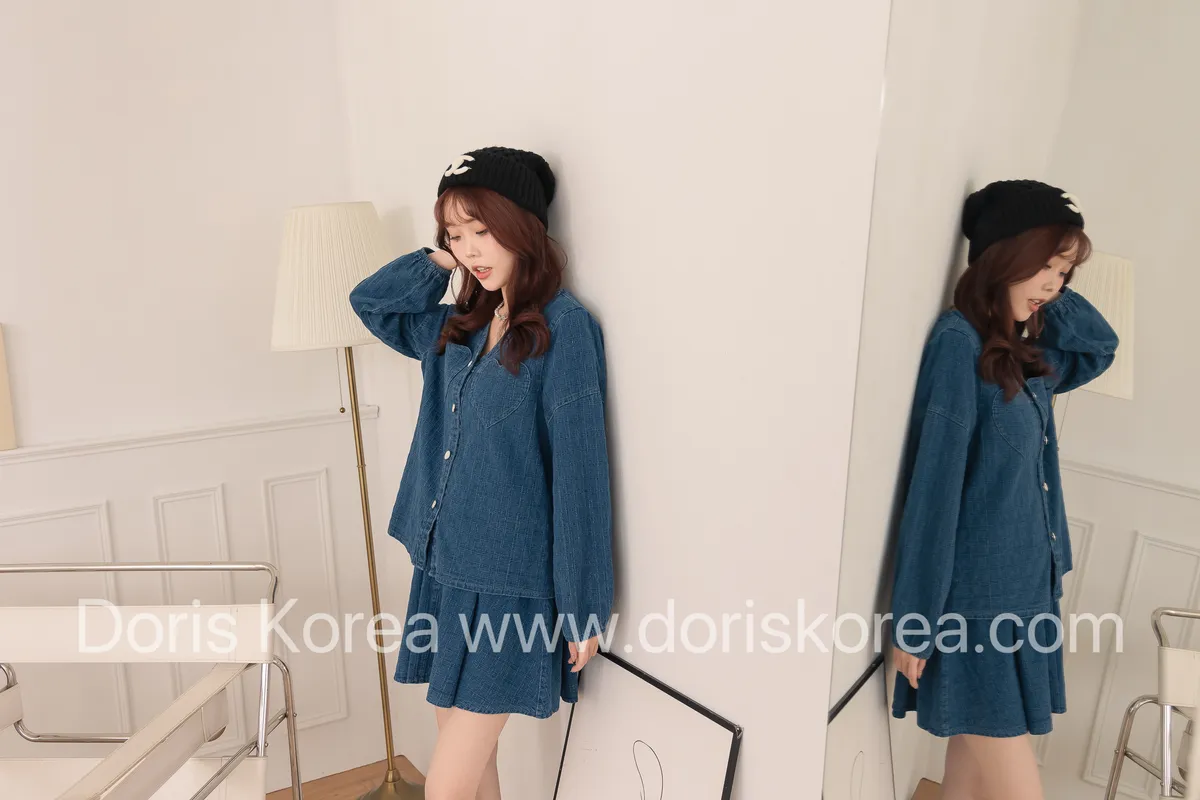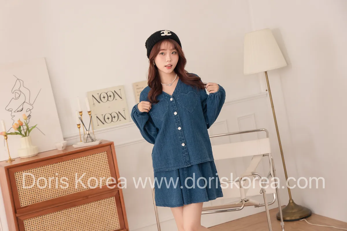 愛心口袋虛線牛仔外套+短裙
