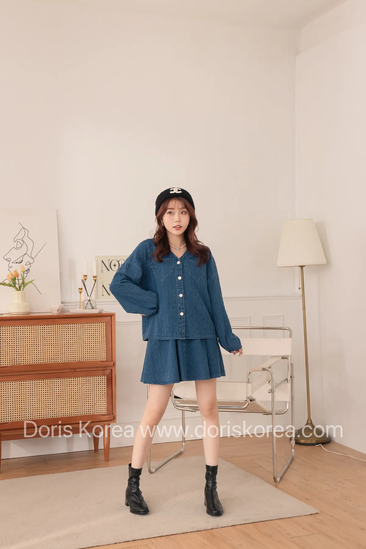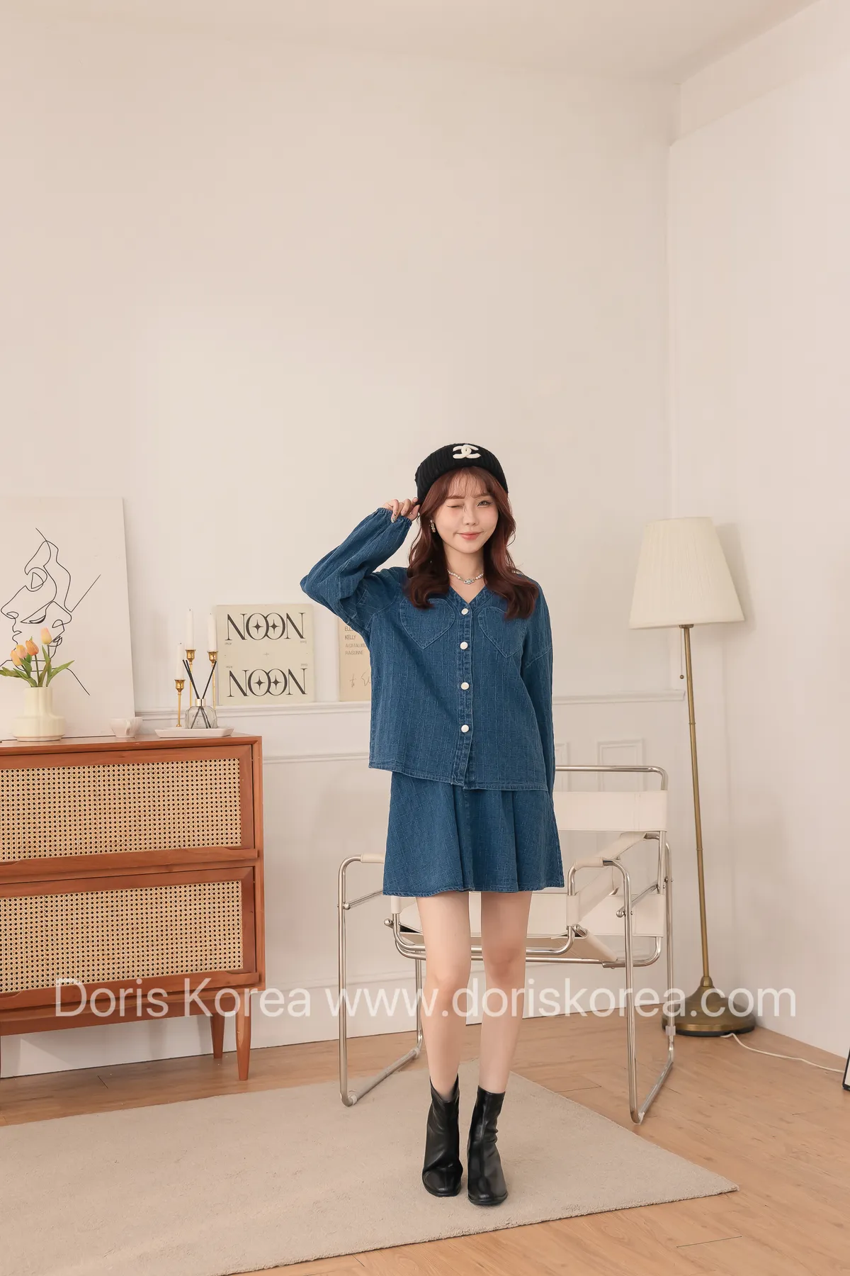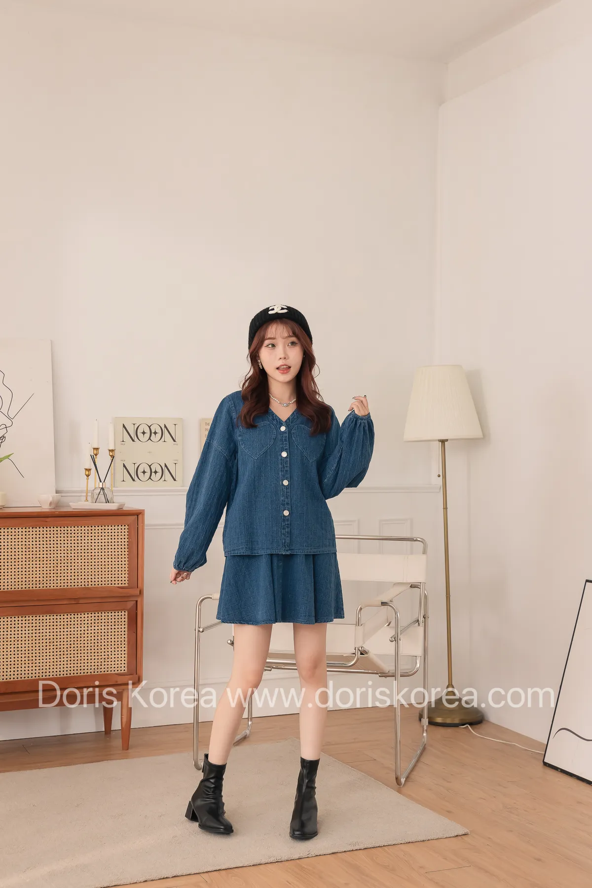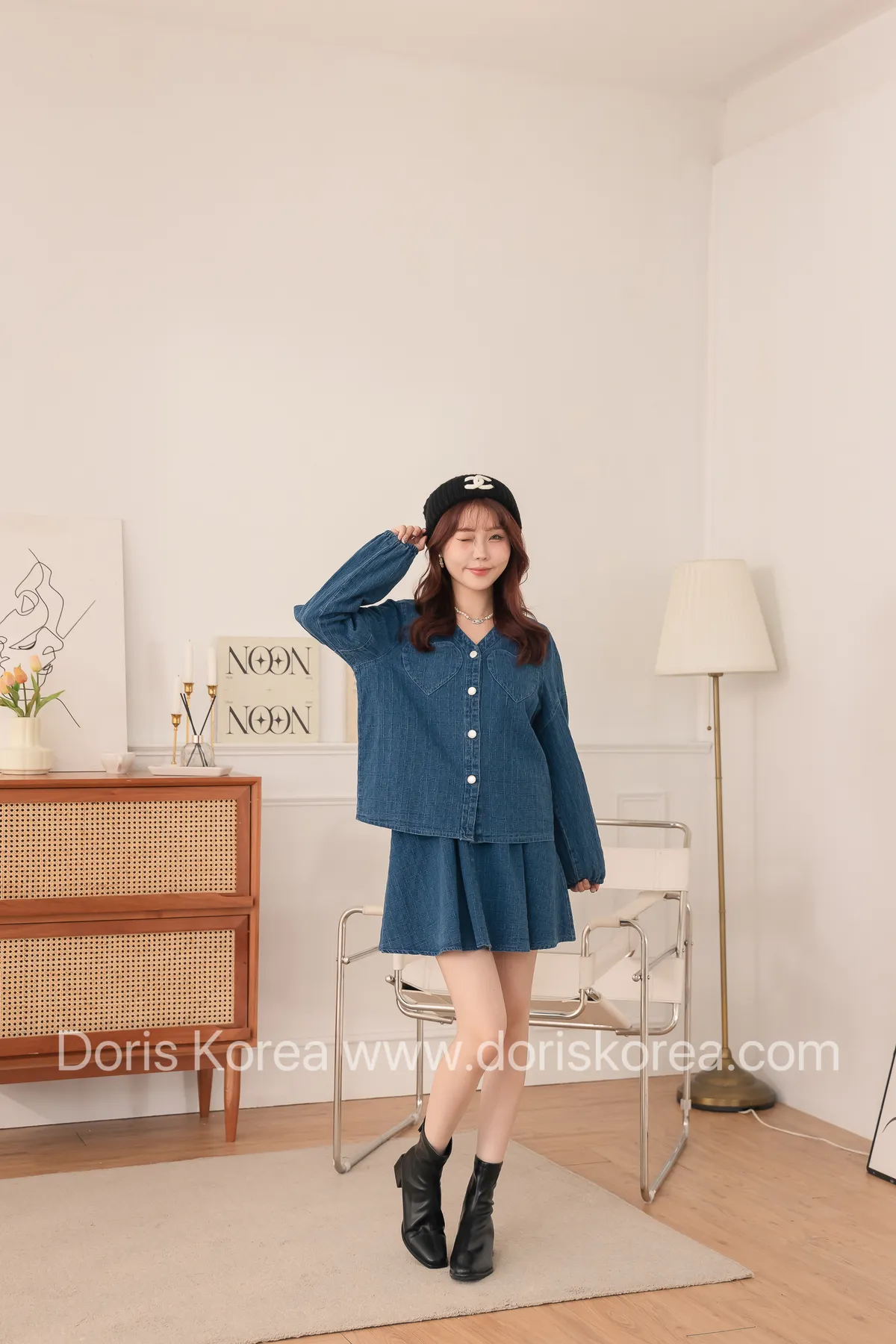 愛心口袋虛線牛仔外套+短裙