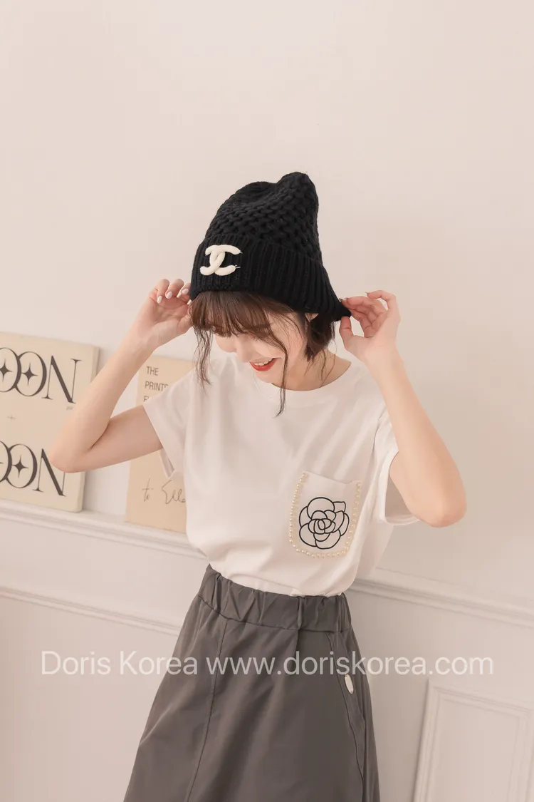 玫瑰花口袋珍珠棉T(白)