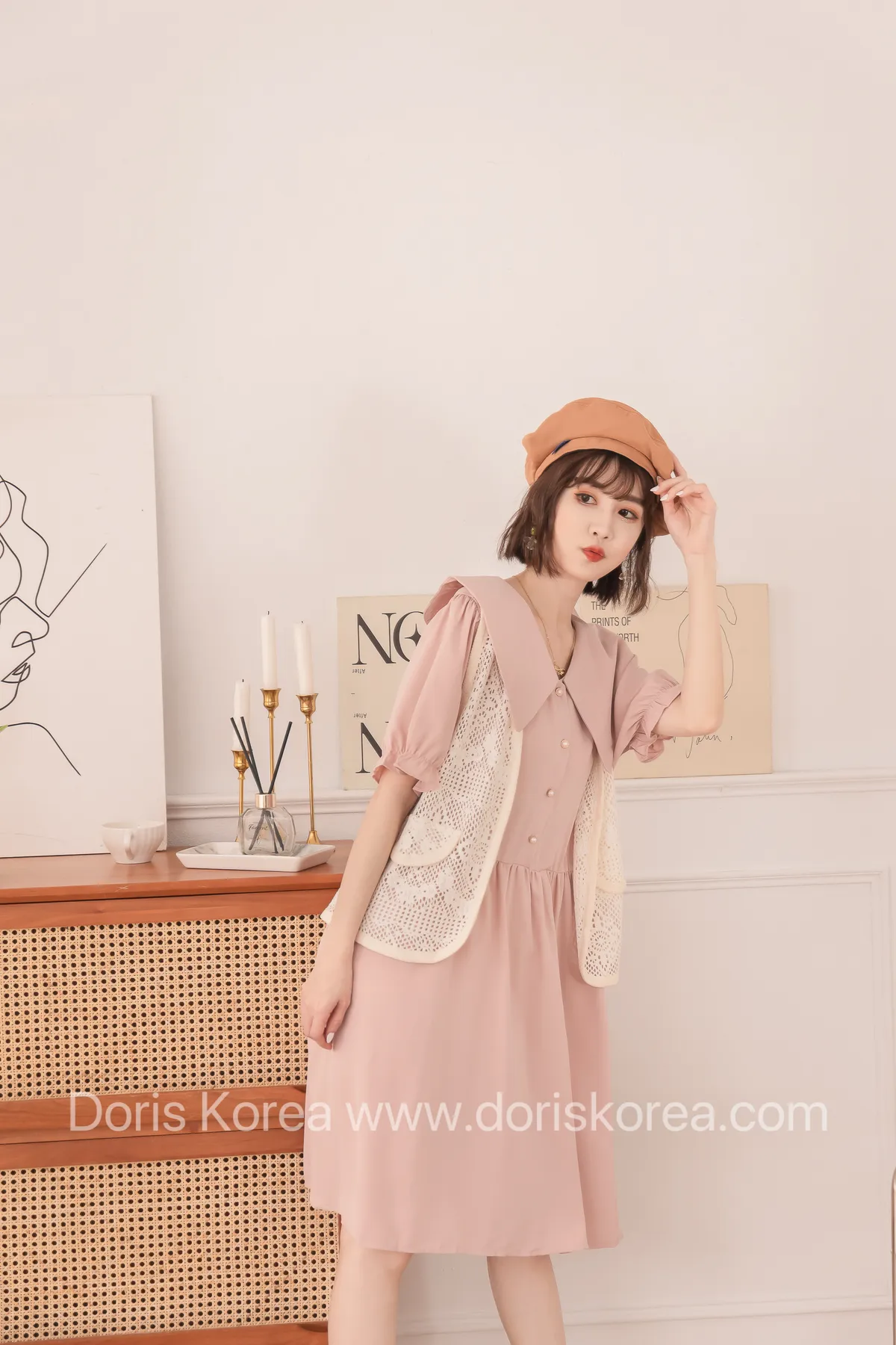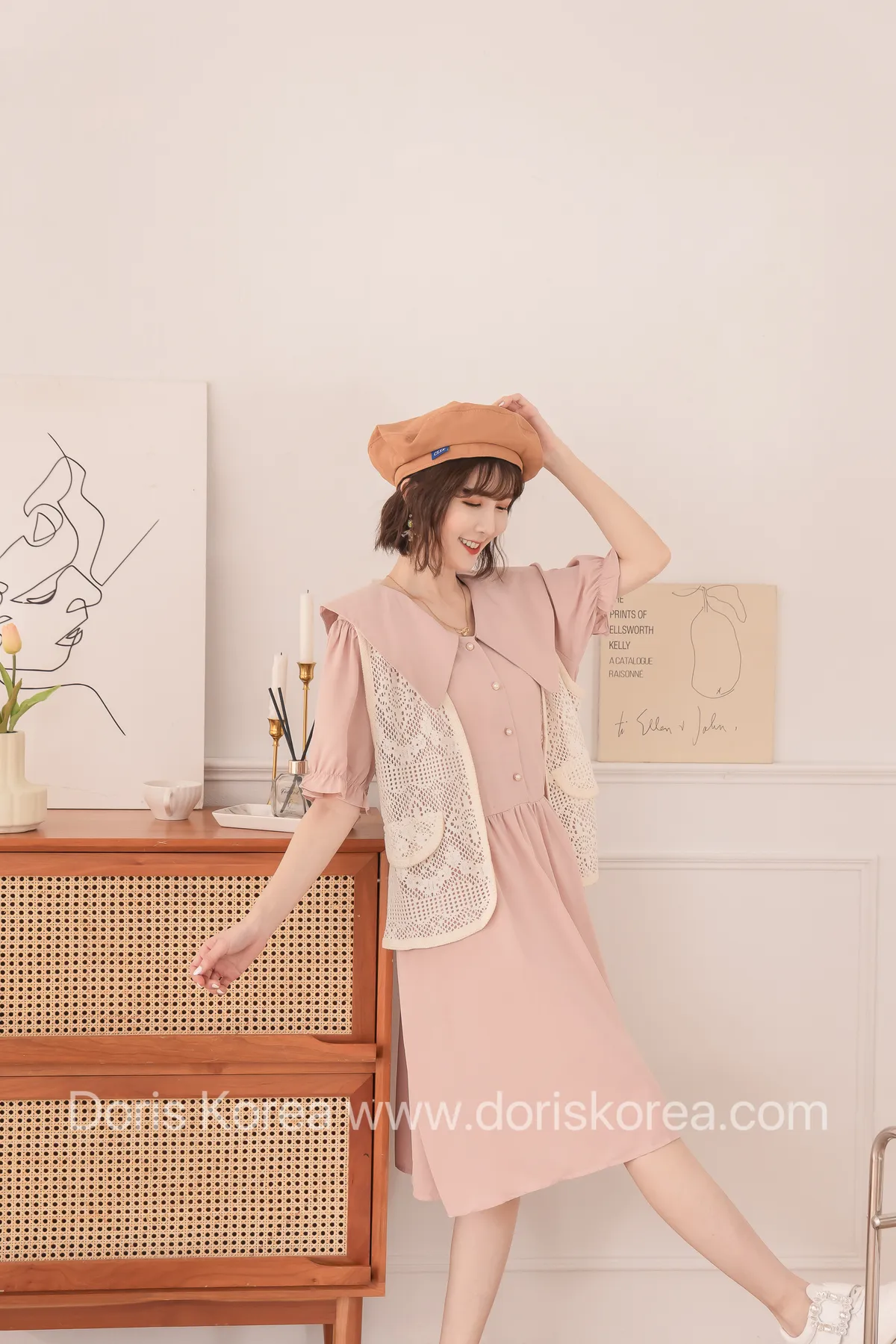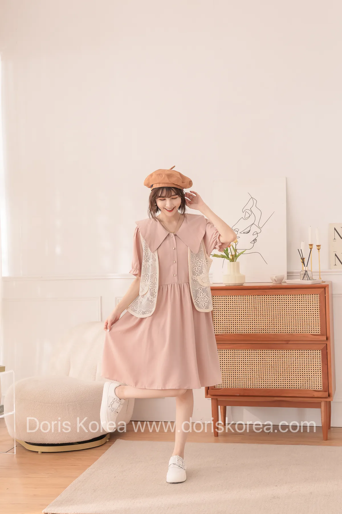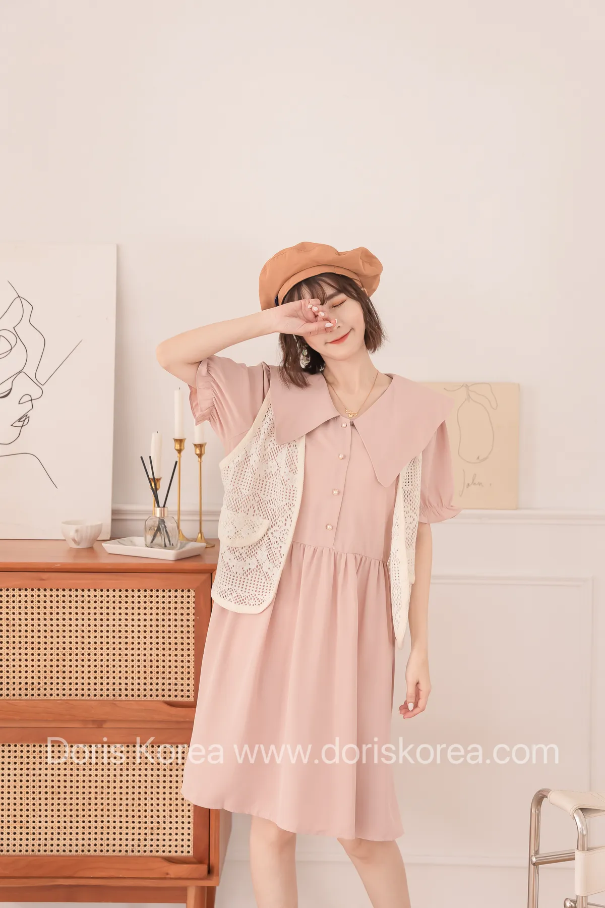 洞洞假背心+寶寶領短洋裝(粉)