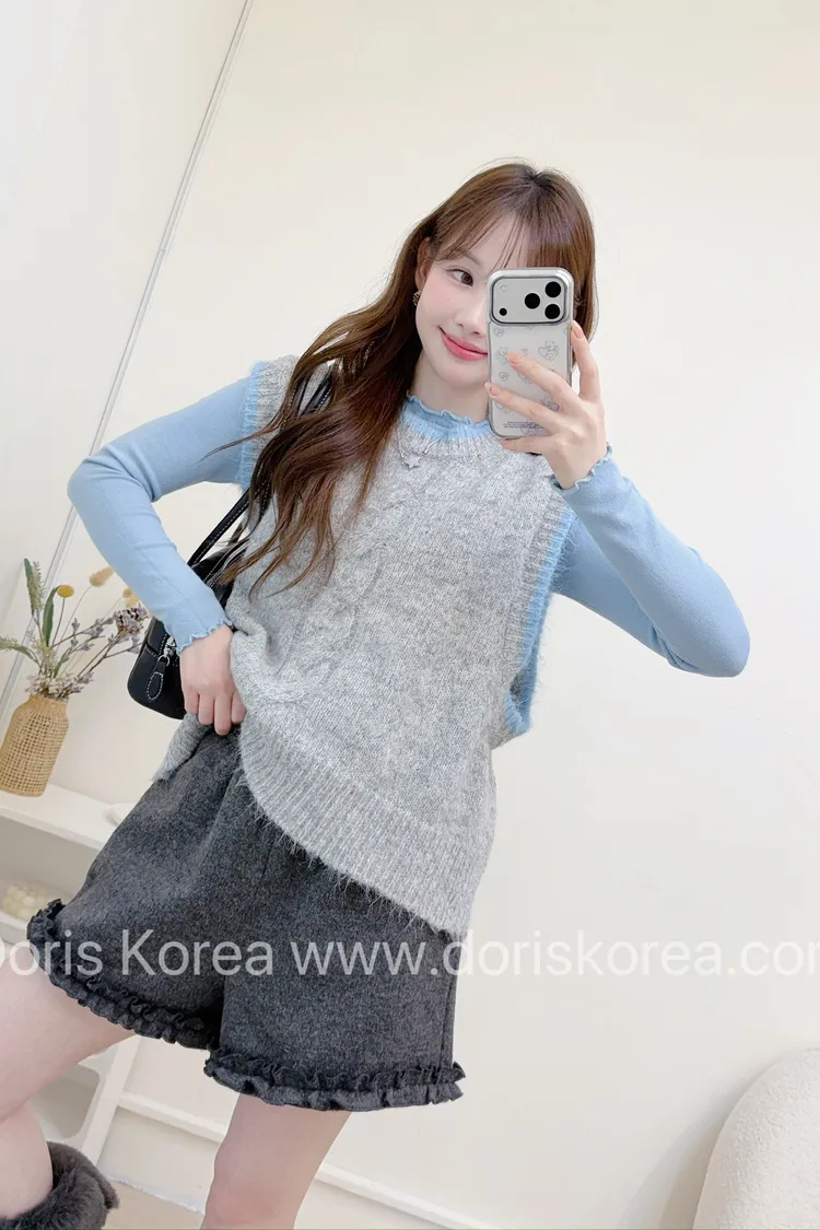 點點背心+捲捲邊內搭