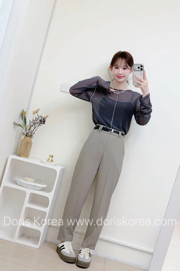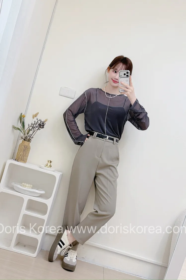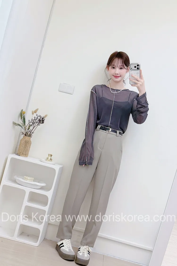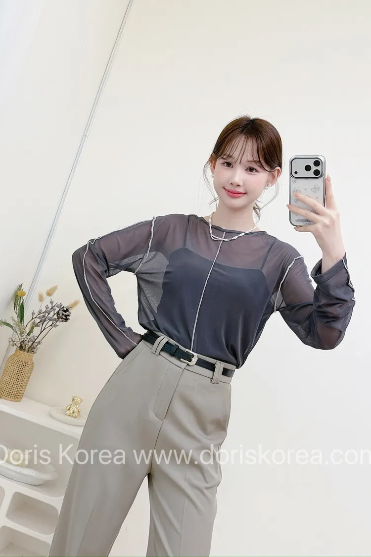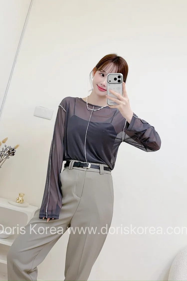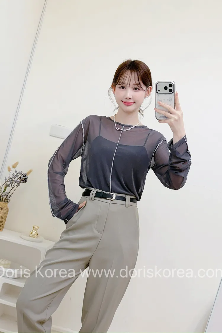 透膚車線網紗衫(灰)