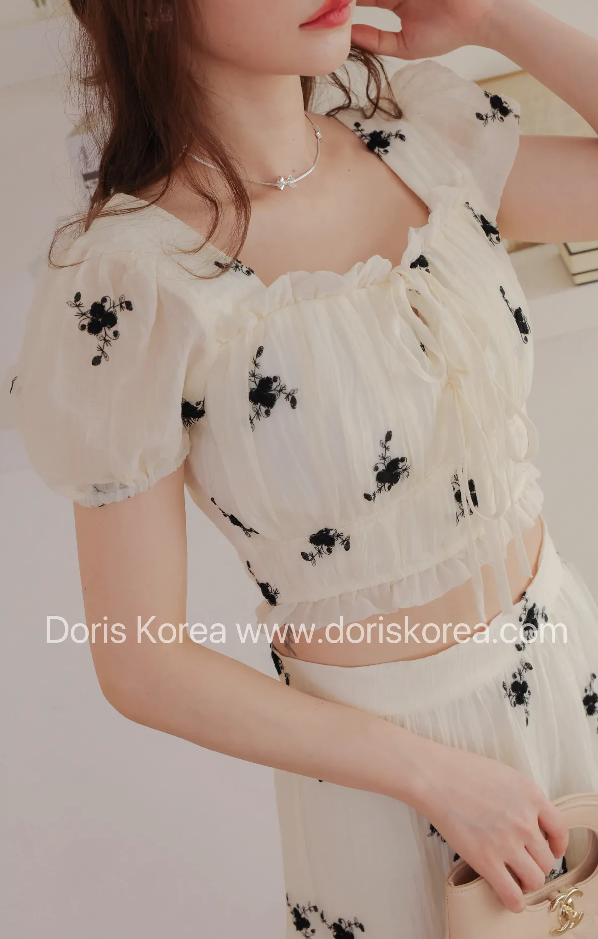 素色花卉上衣+長裙SET