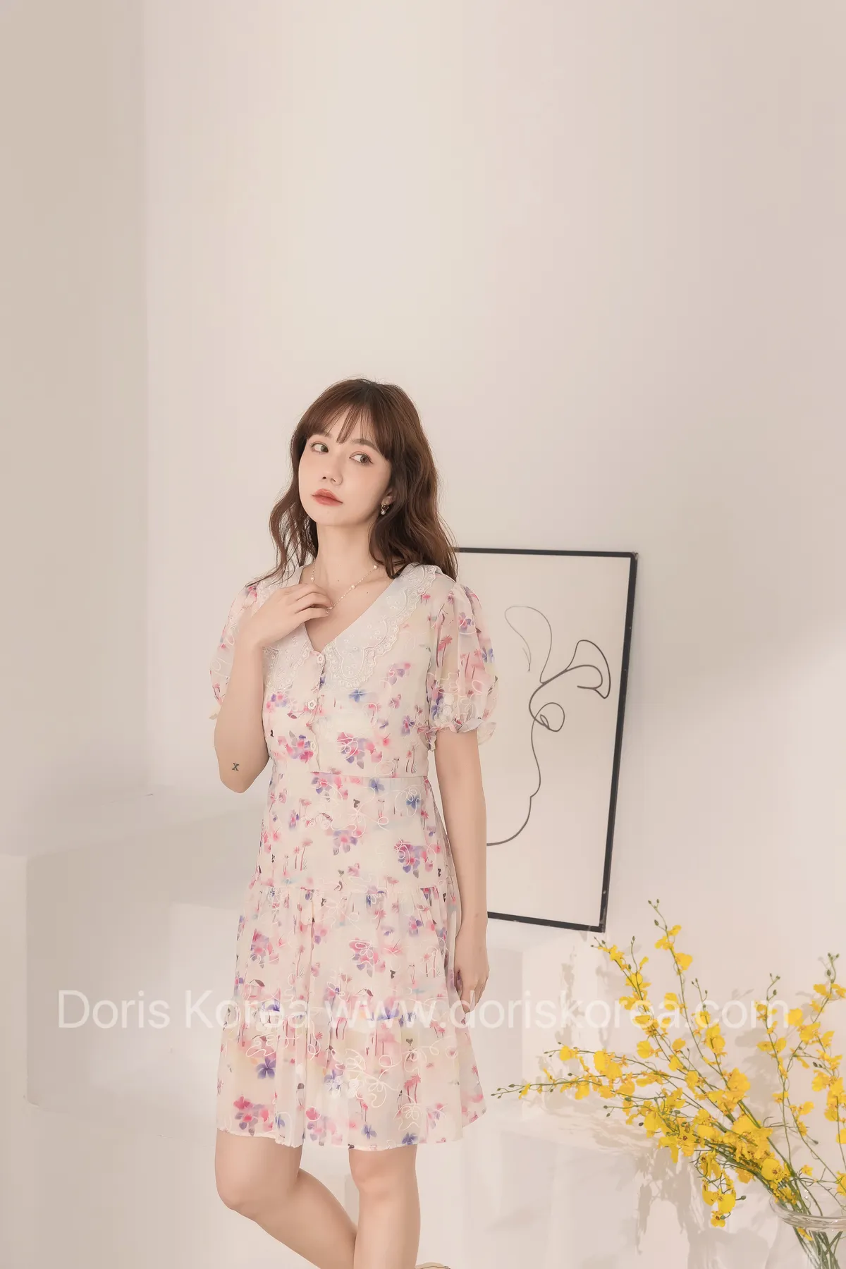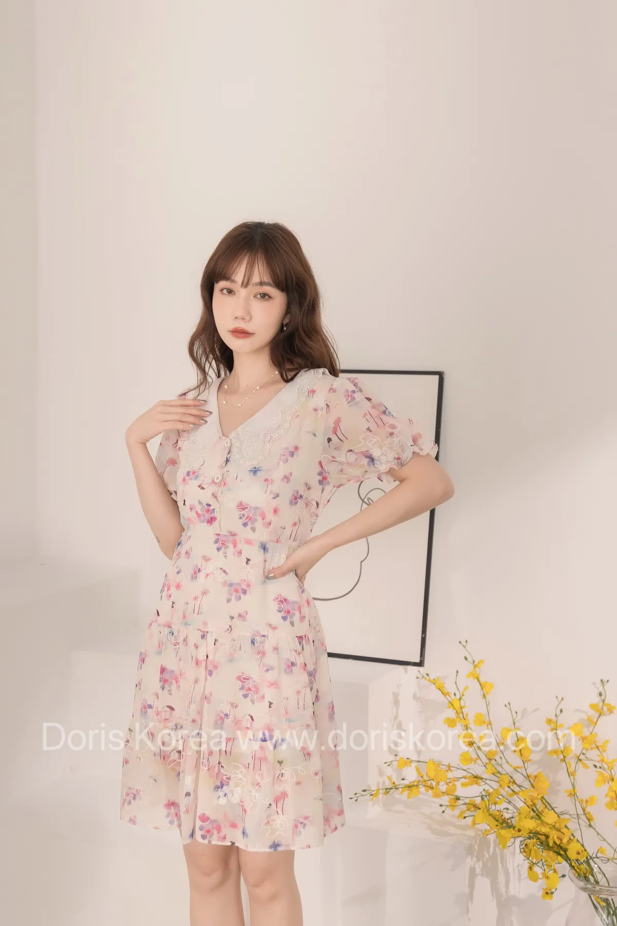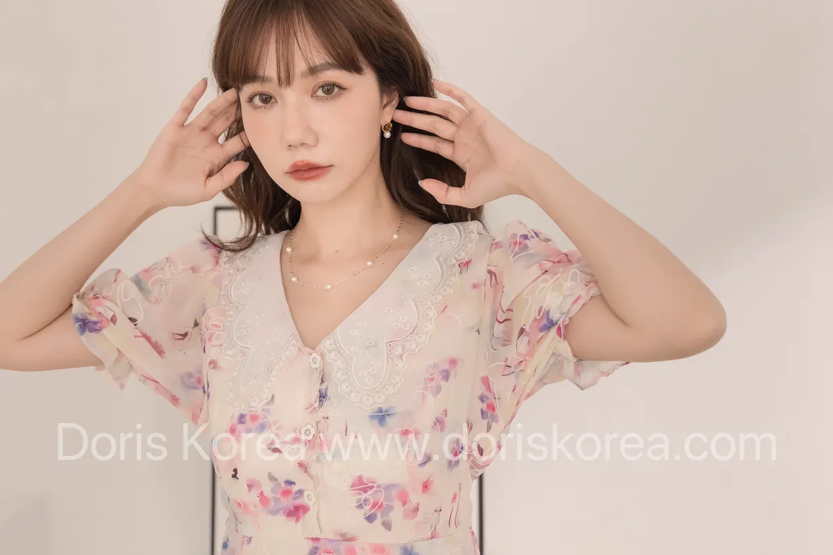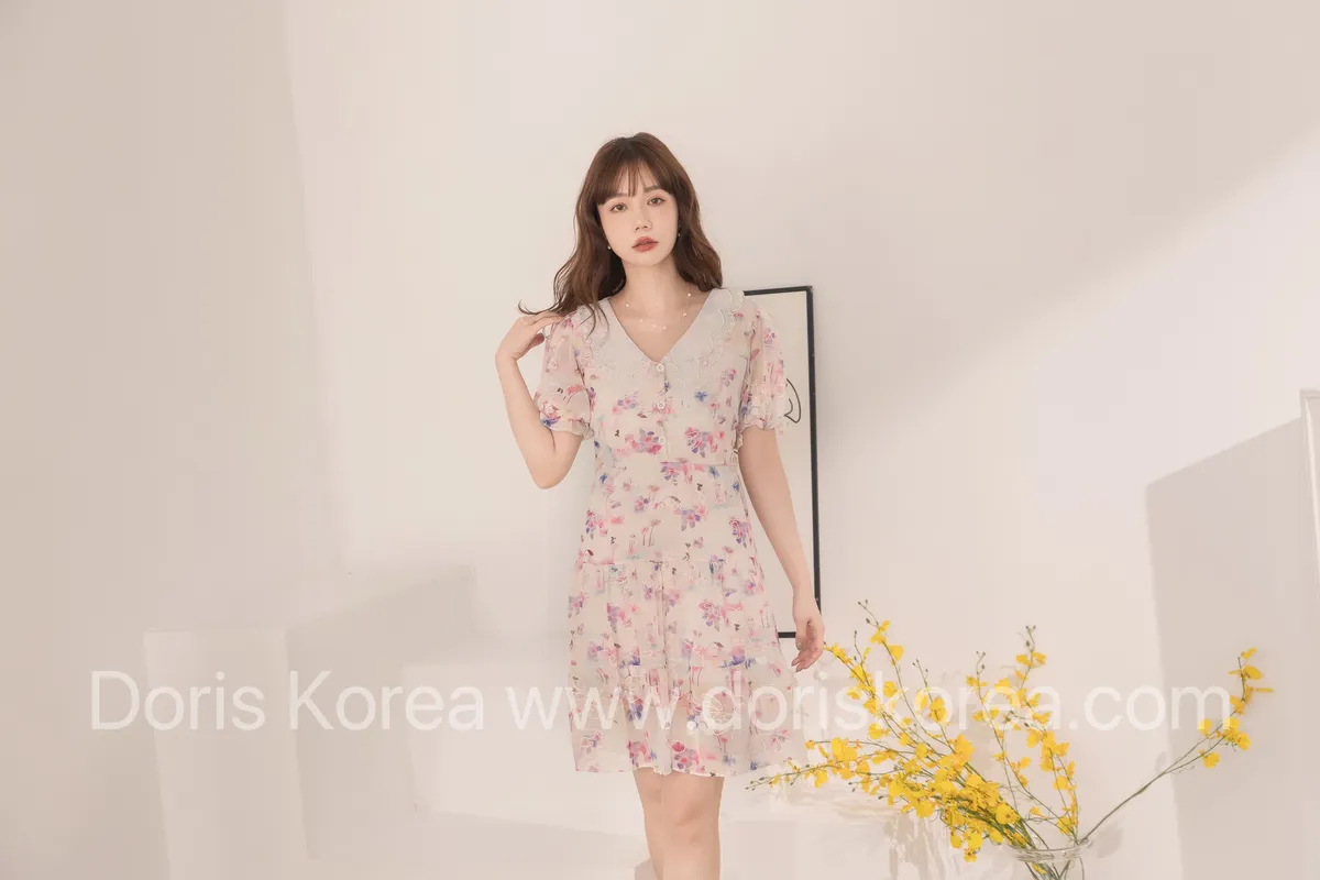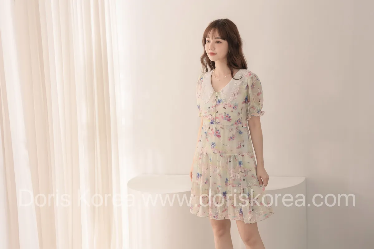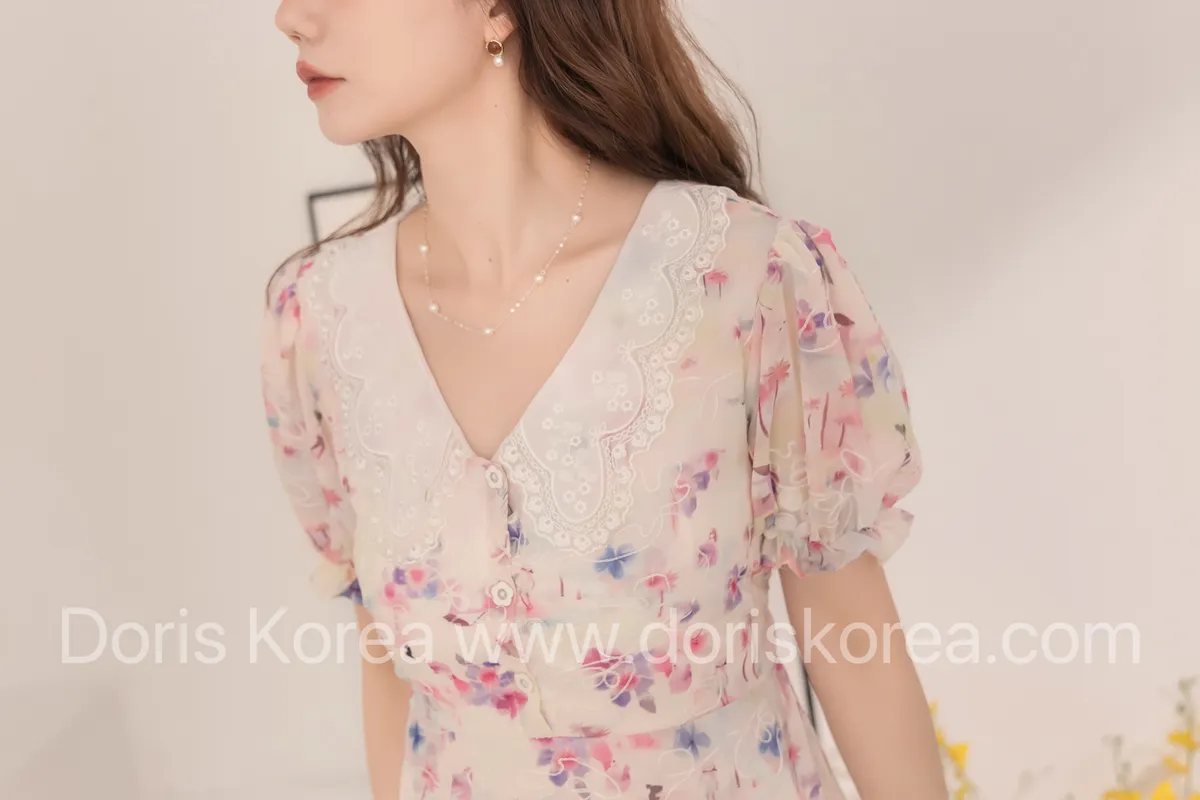 自訂款-渲染花卉刺繡娃娃領短洋裝