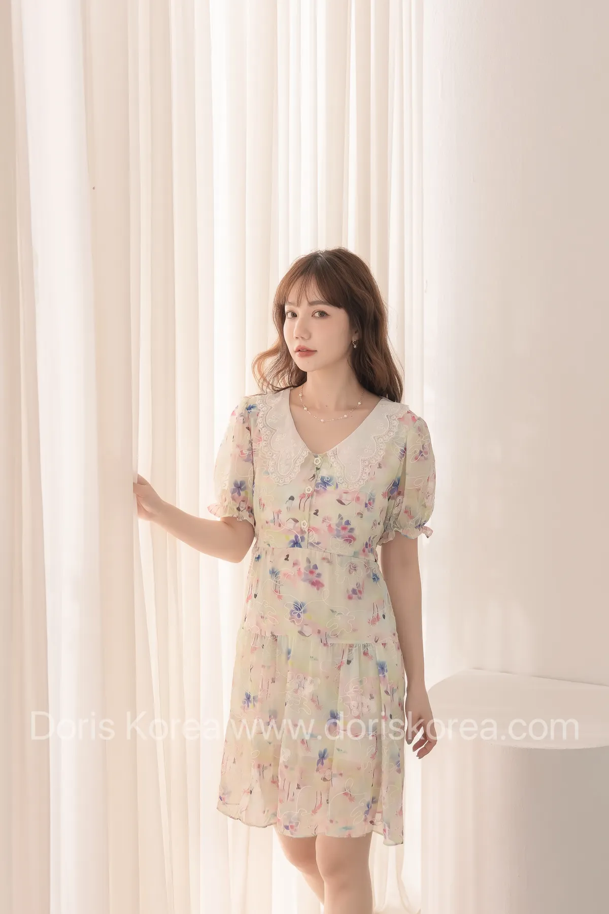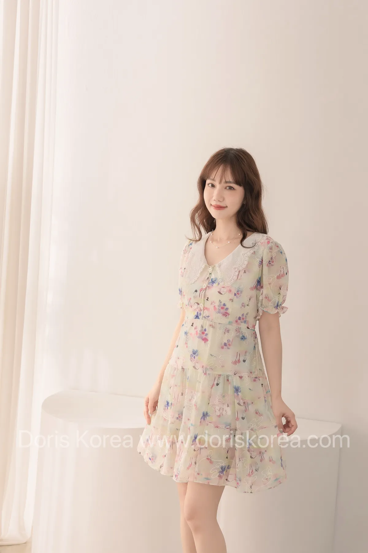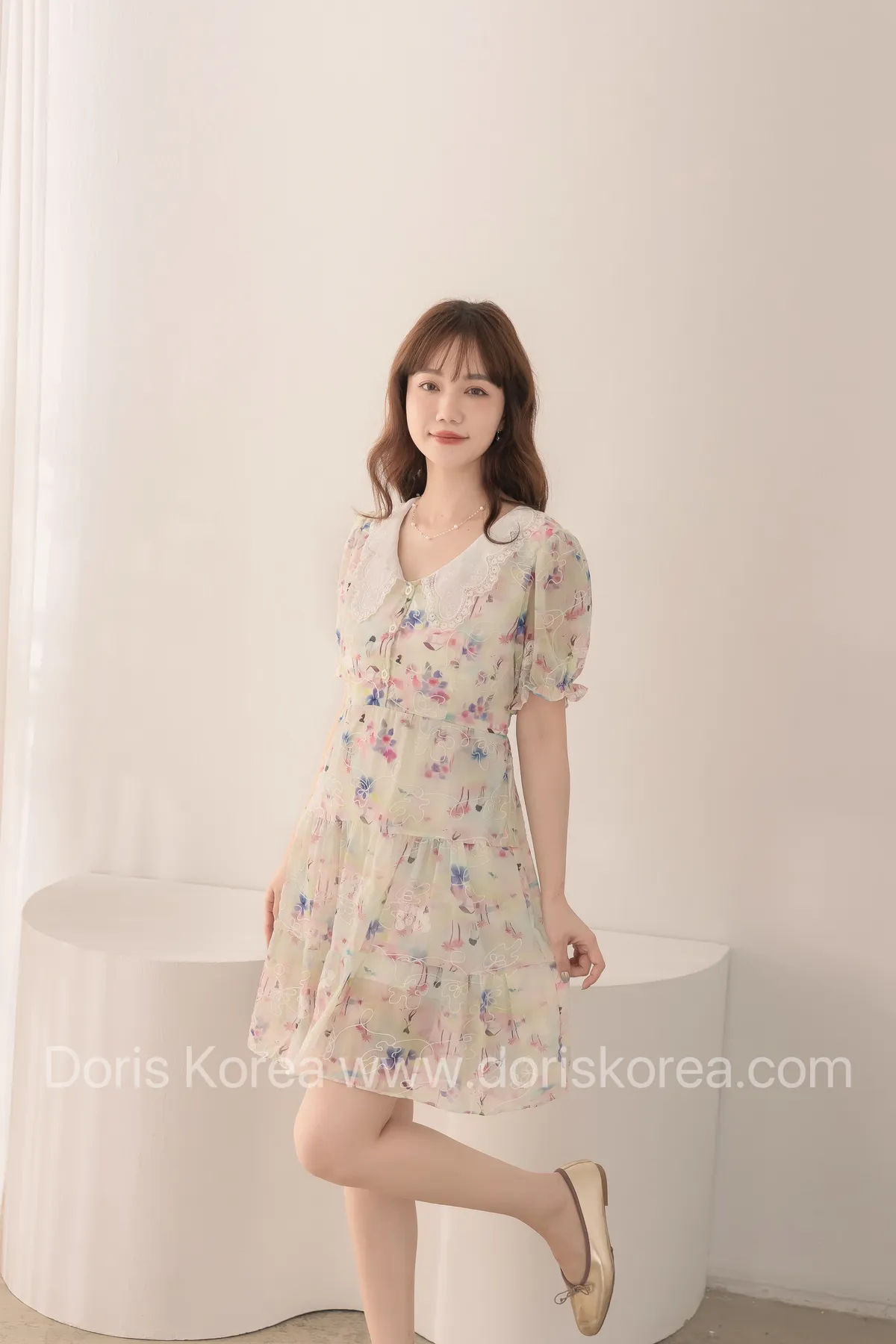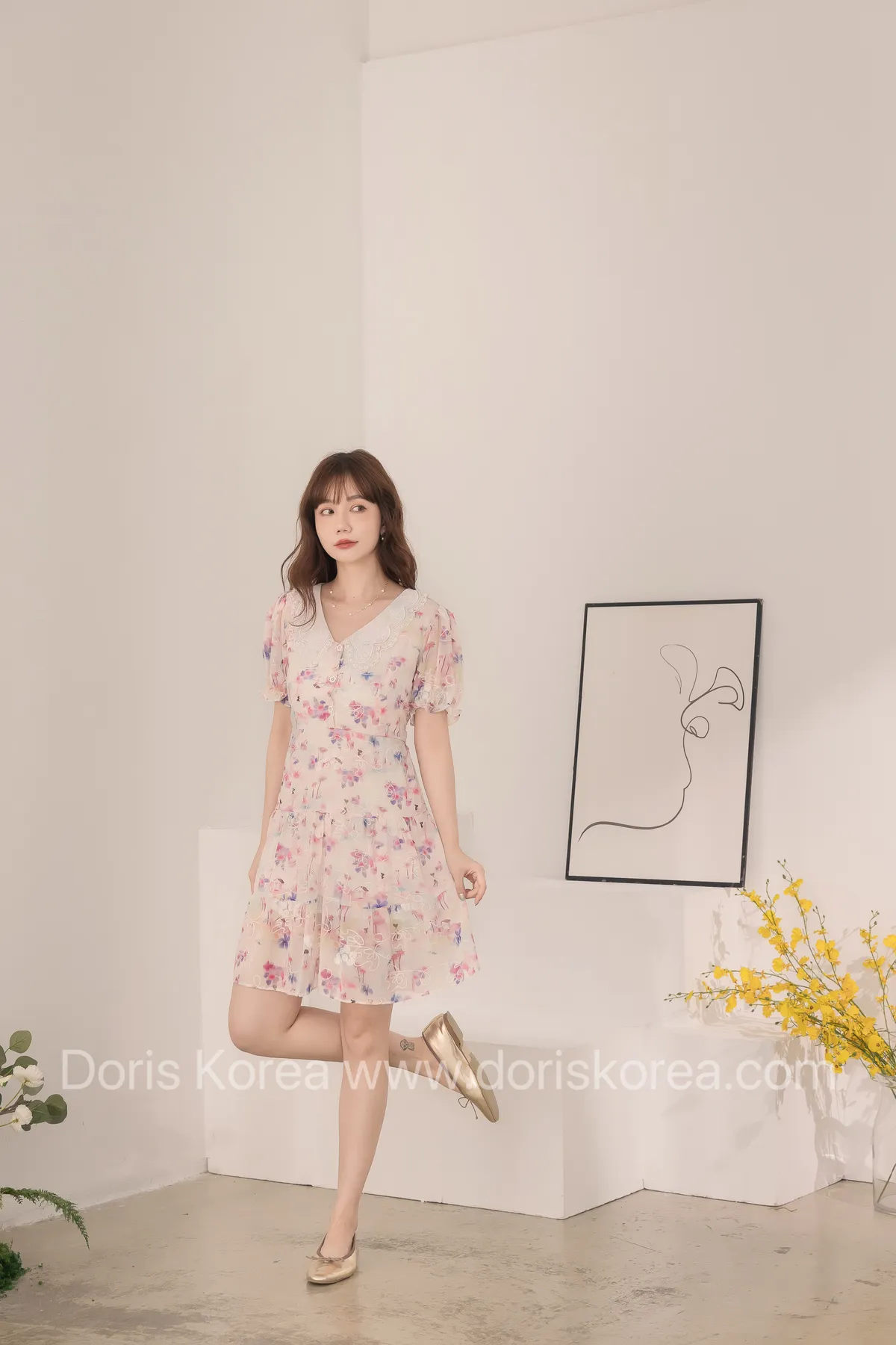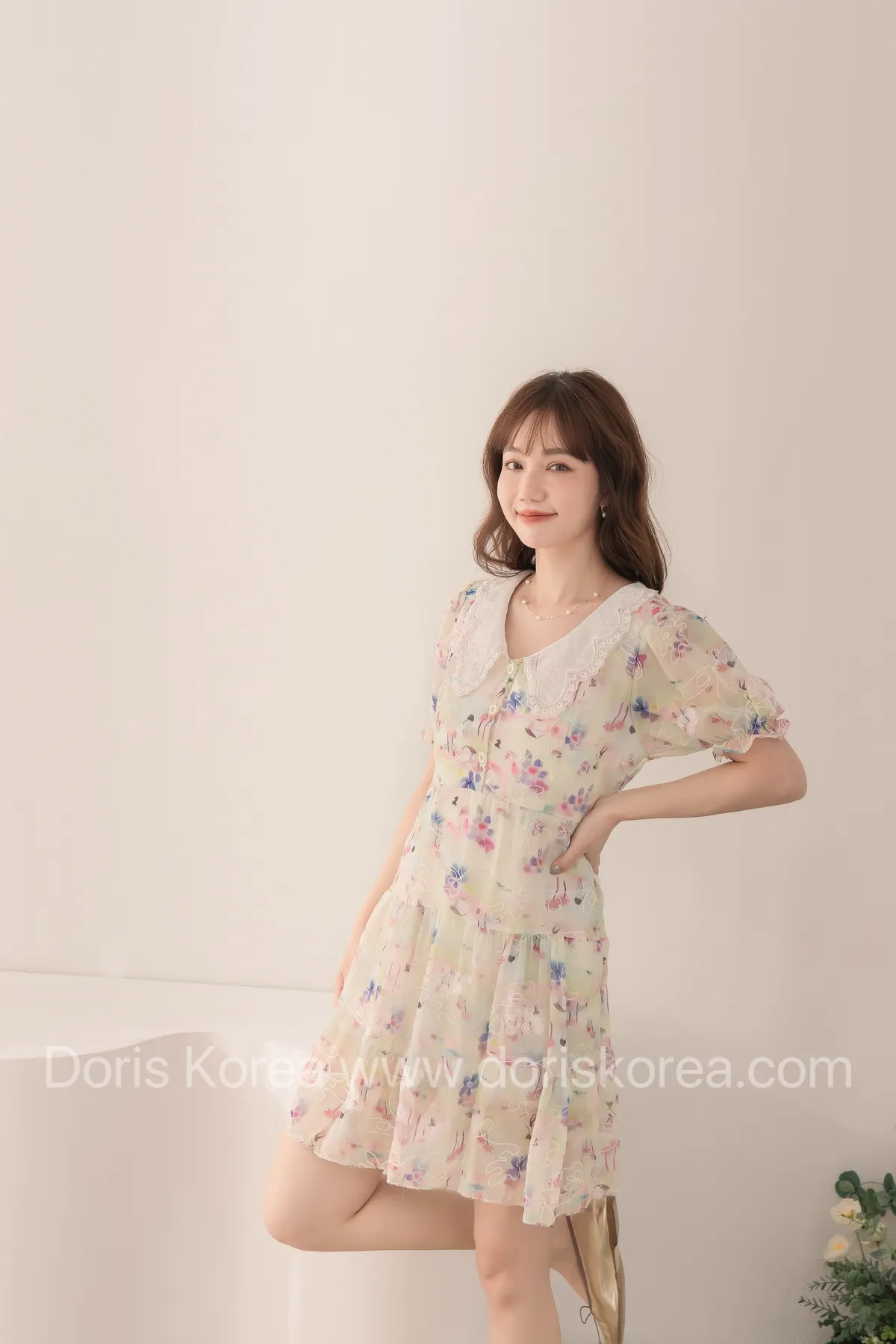 自訂款-渲染花卉刺繡娃娃領短洋裝