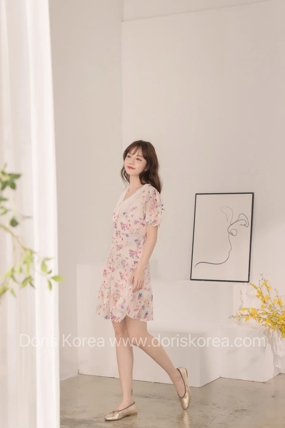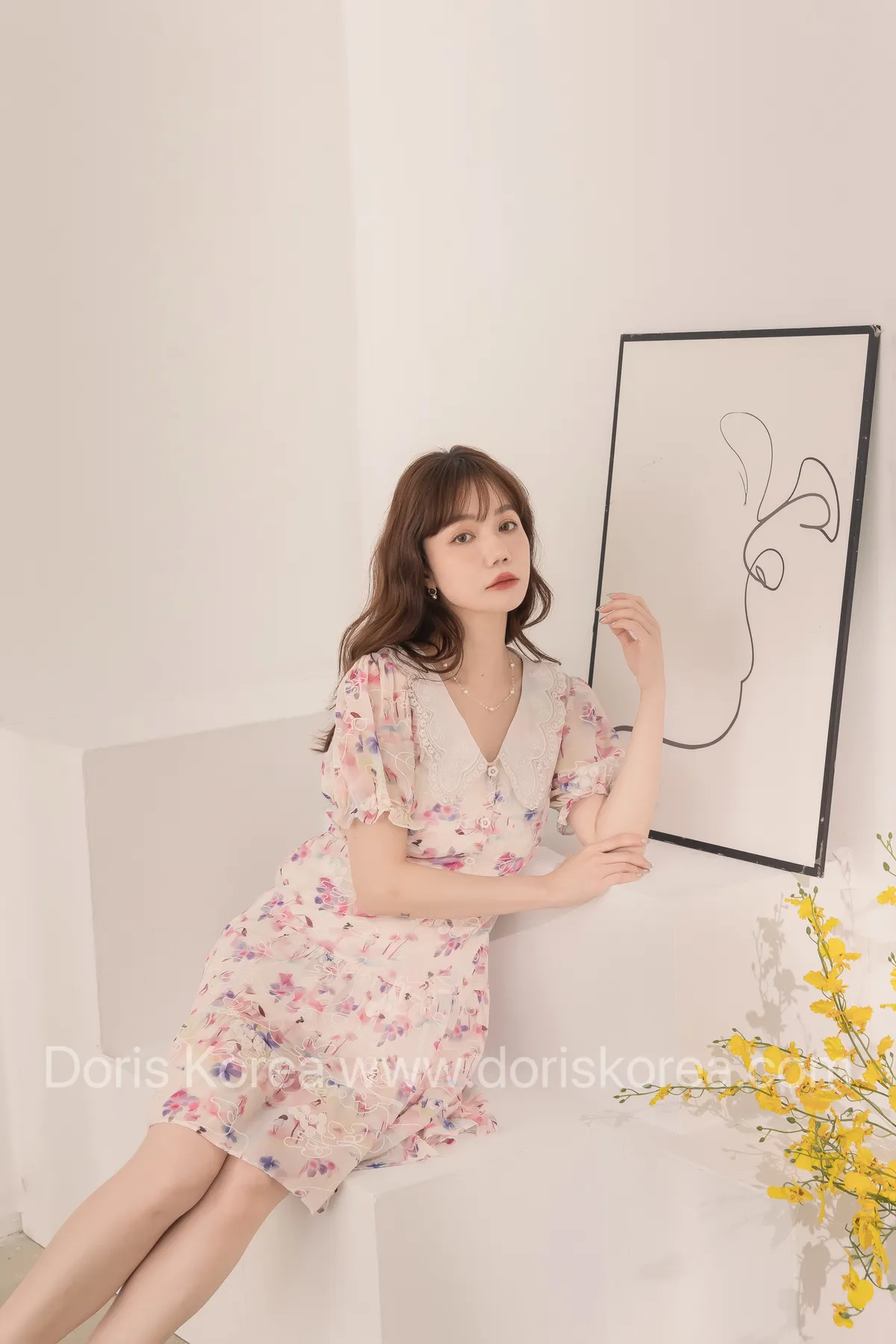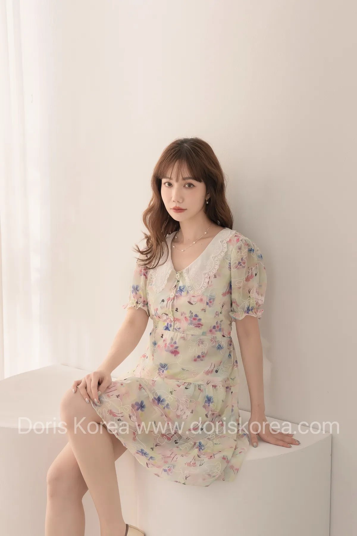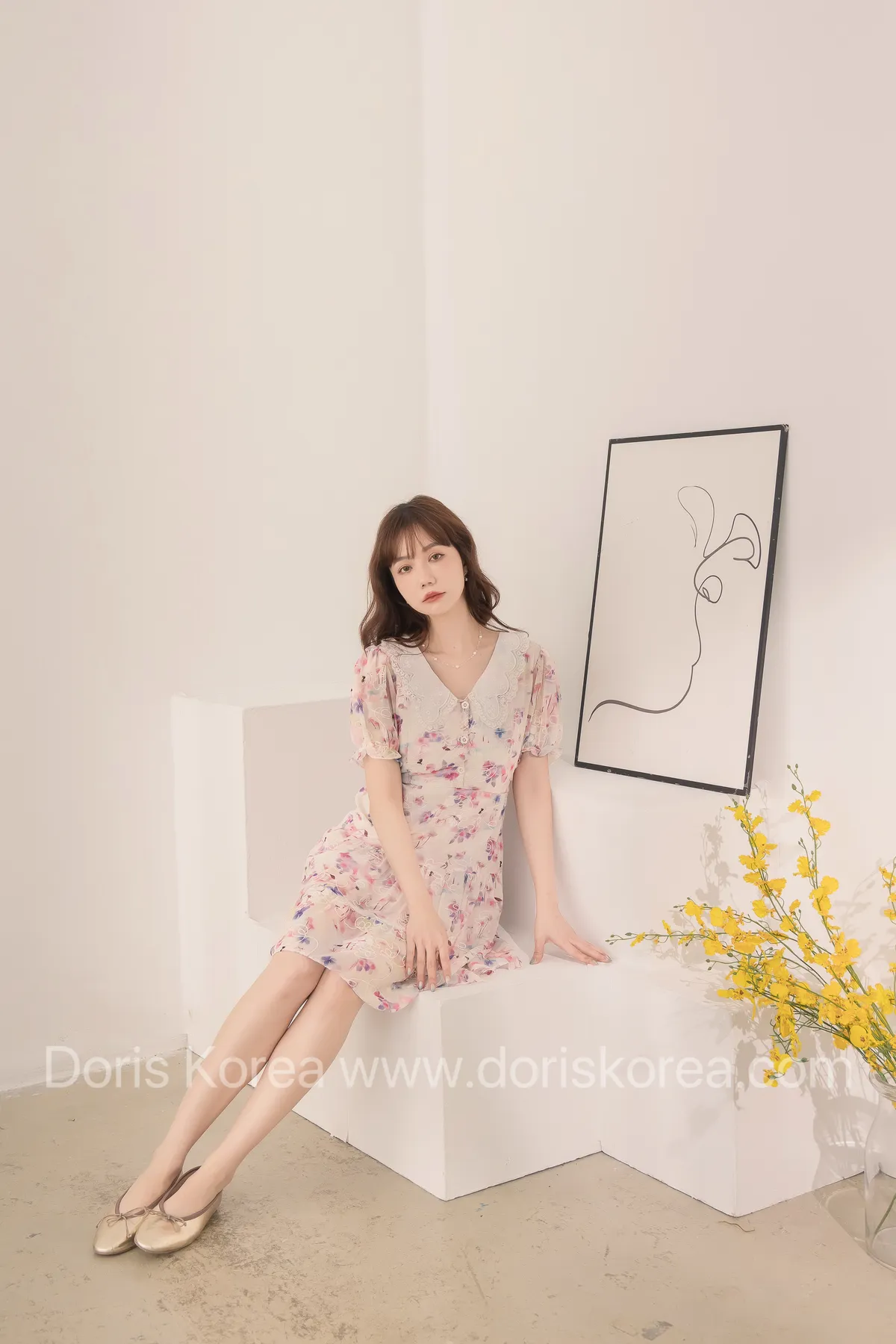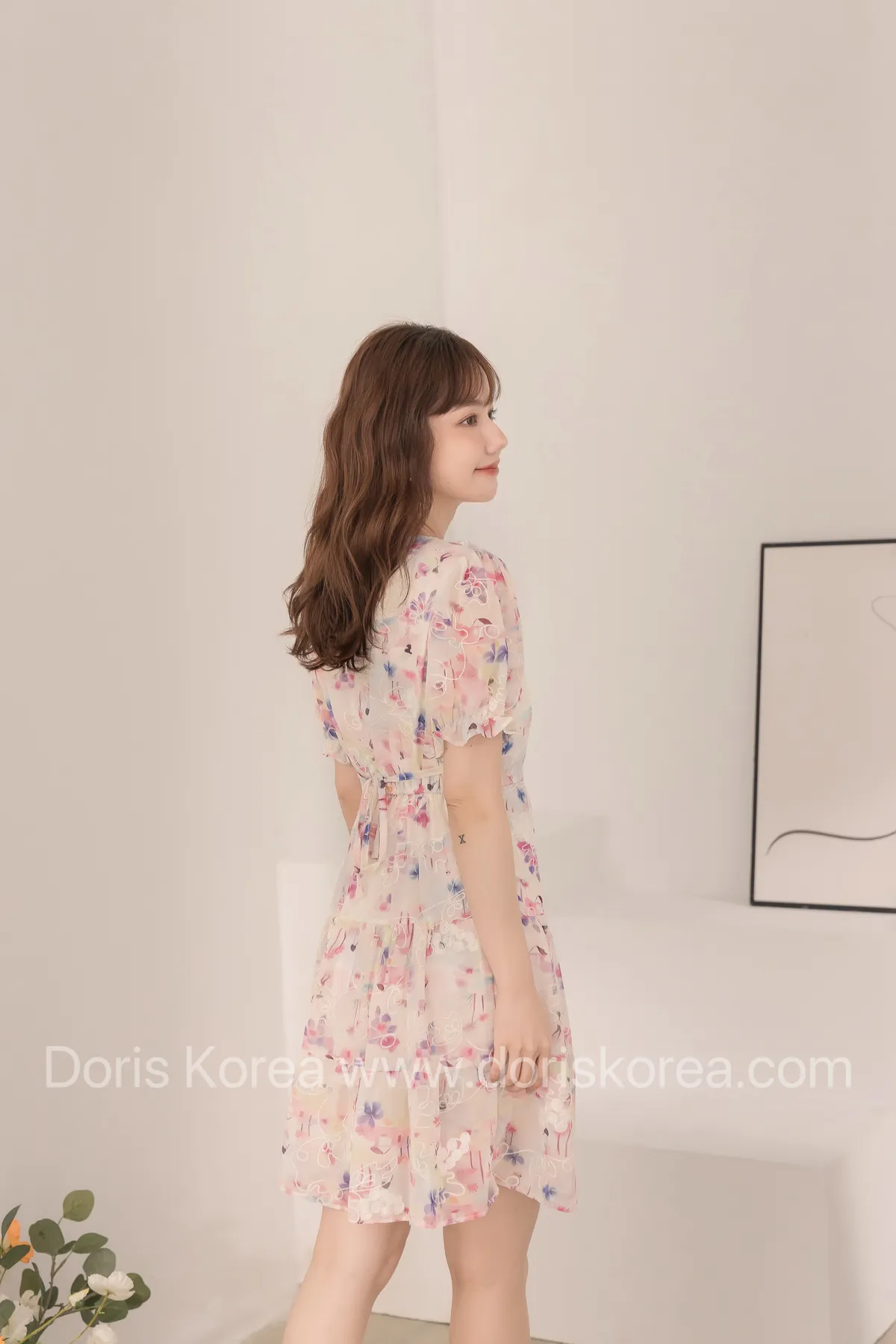 自訂款-渲染花卉刺繡娃娃領短洋裝