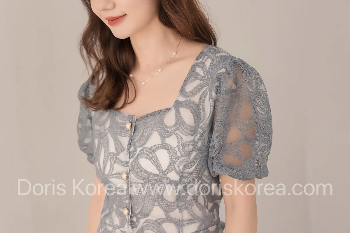 V字全蕾絲袖雙層洋裝