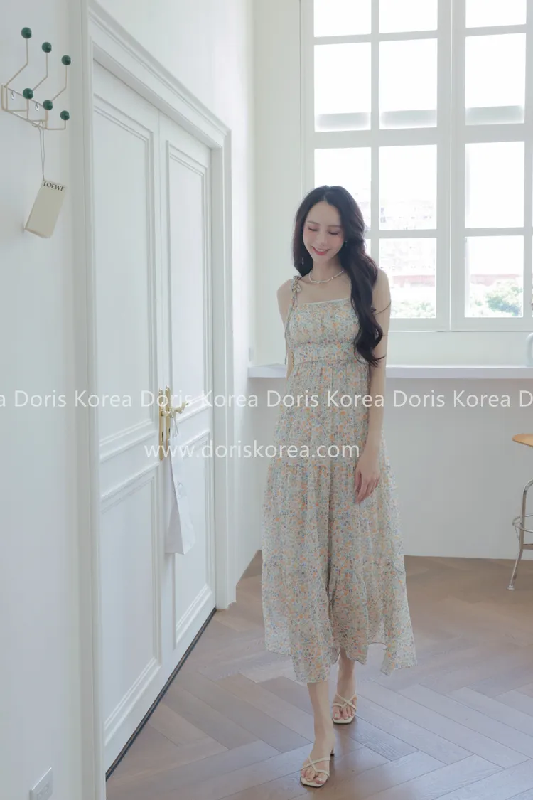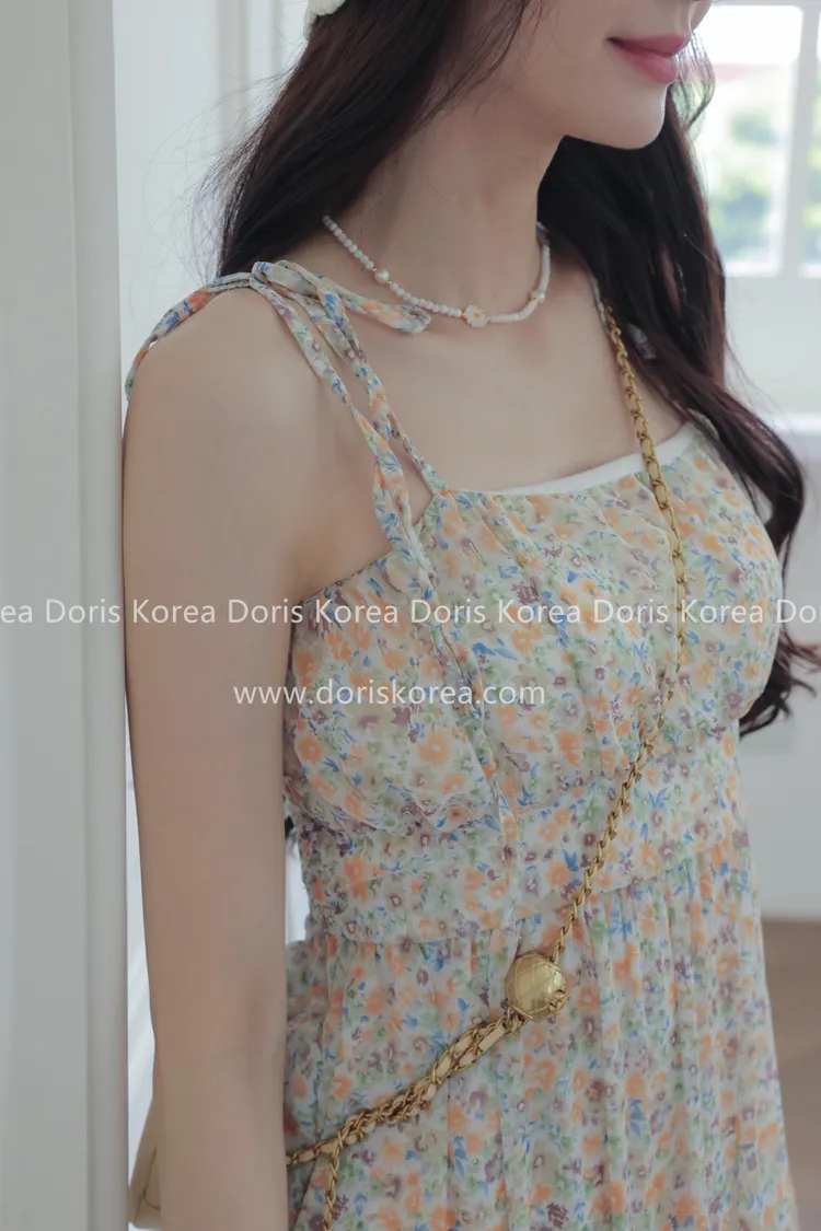 自訂款-細肩帶綠花感平口細肩洋裝(綠)