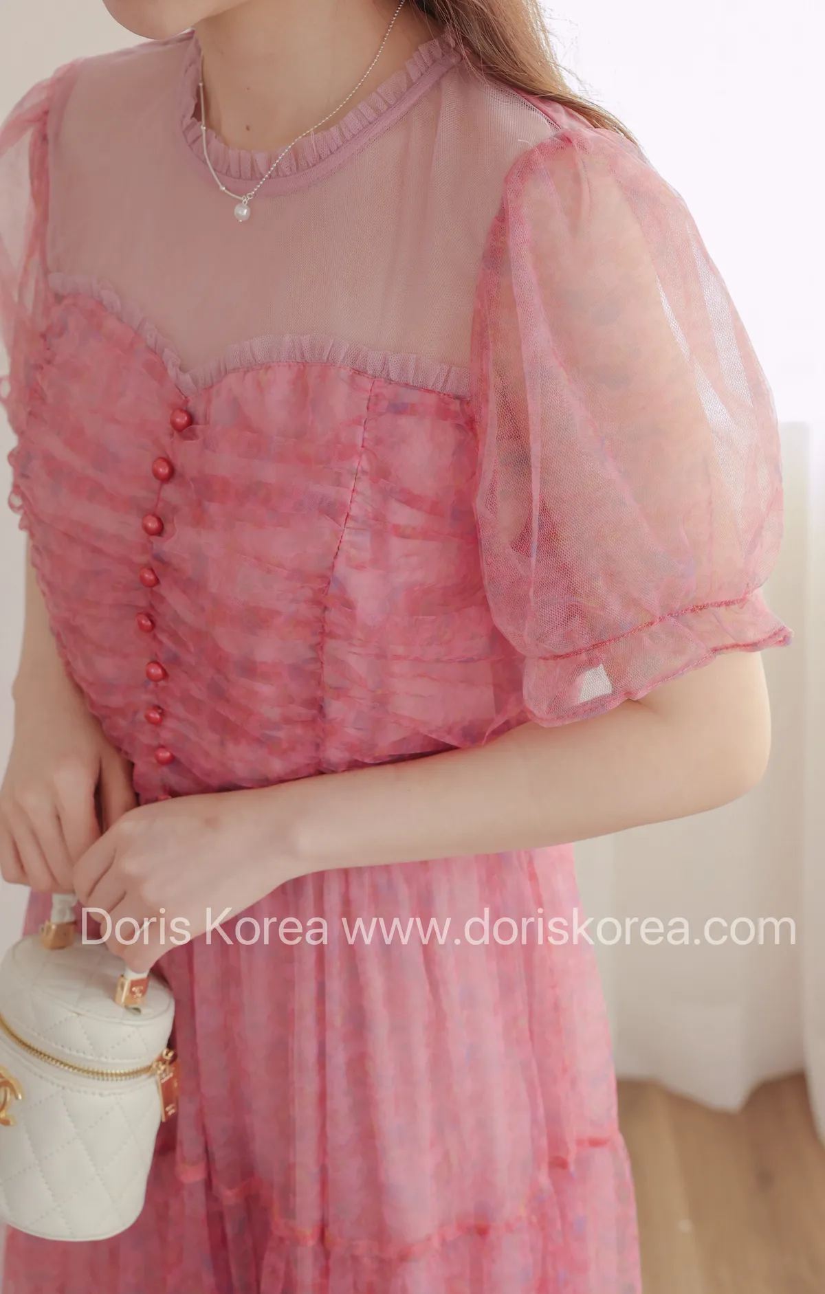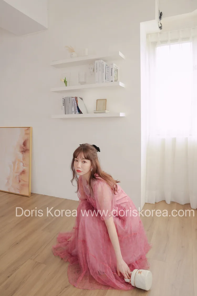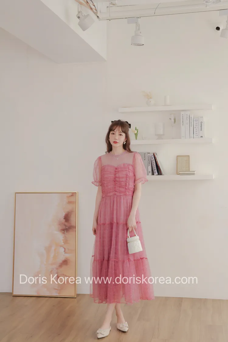 自訂款-全網紗拼接微透感洋裝(粉)