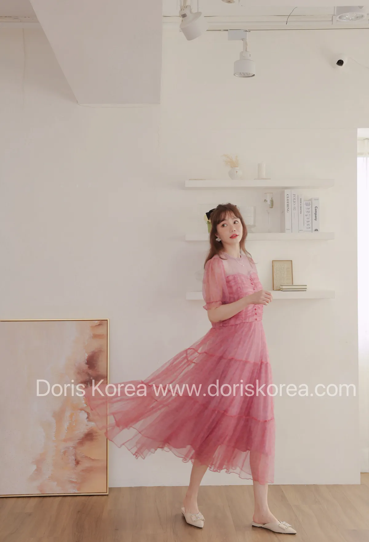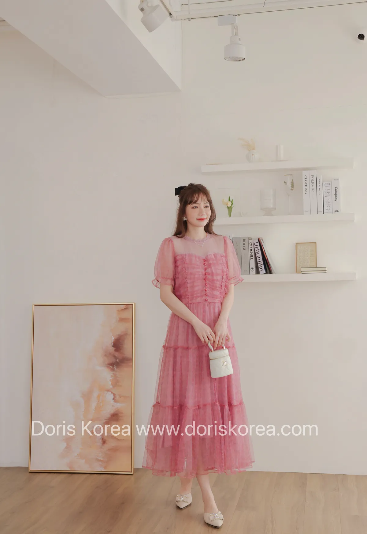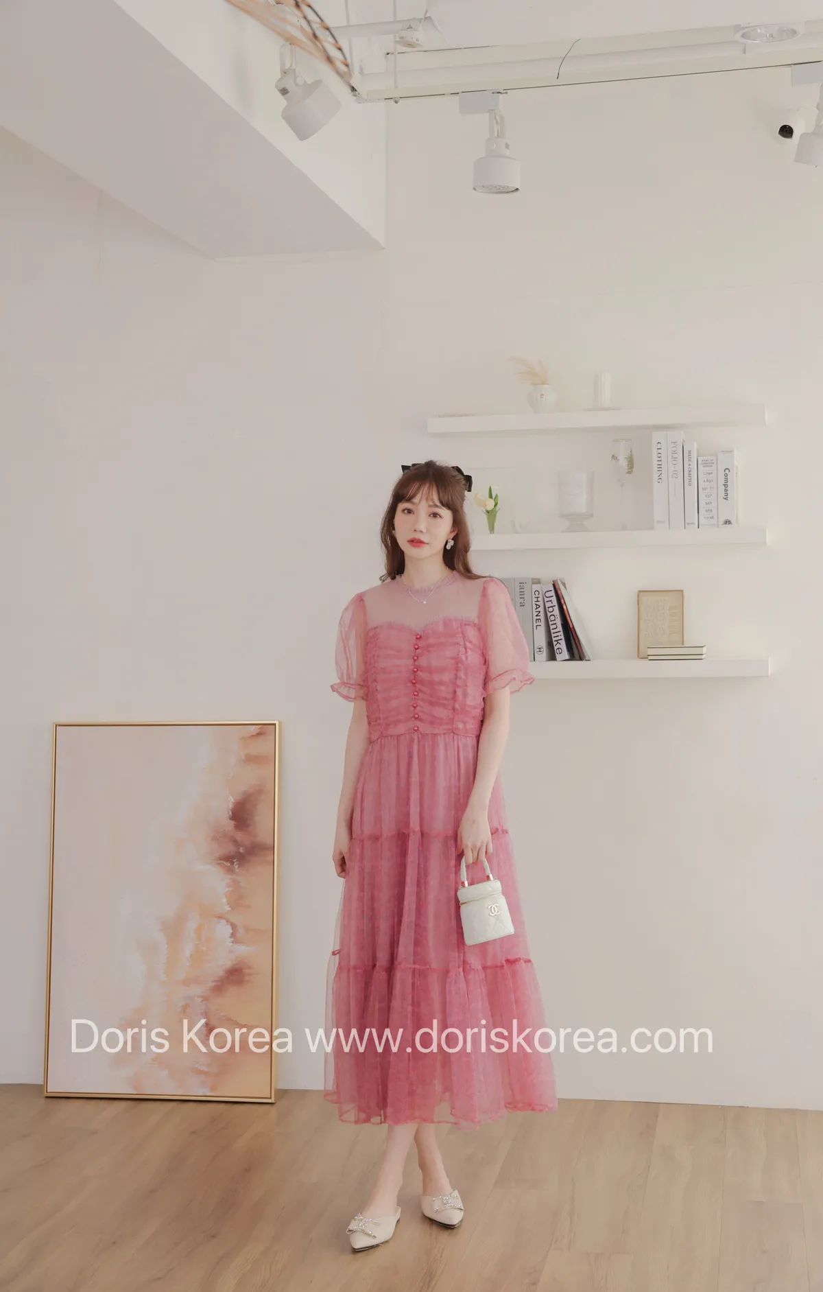 自訂款-全網紗拼接微透感洋裝(粉)