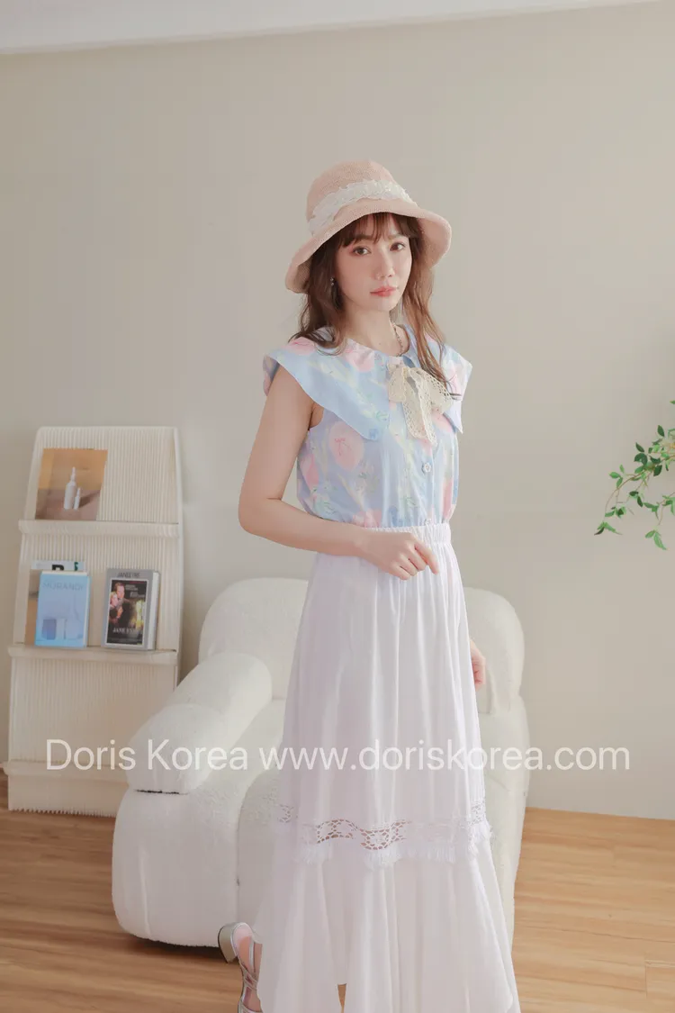 鬱金香蝴蝶結大領混色背心(藍)