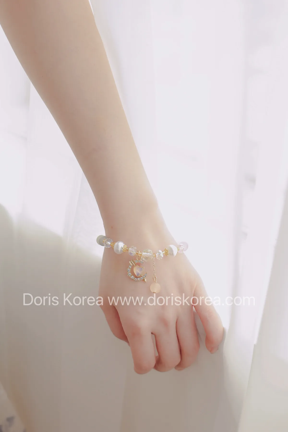 幸運水晶-愛心月亮垂墜水晶手鏈