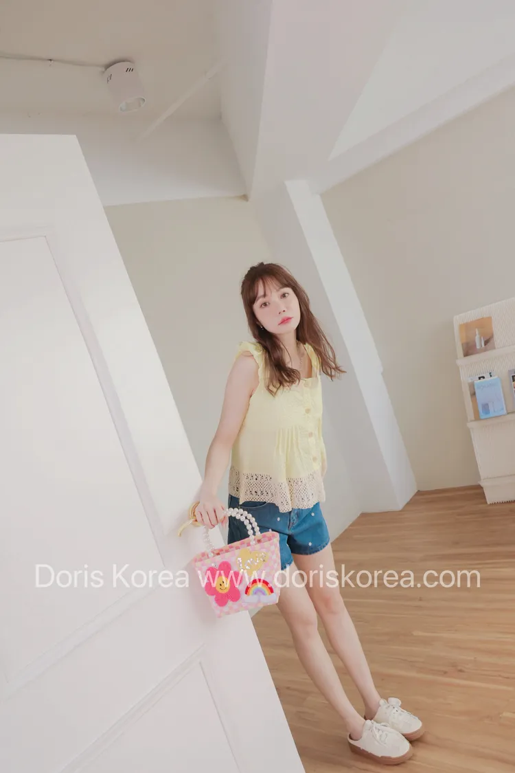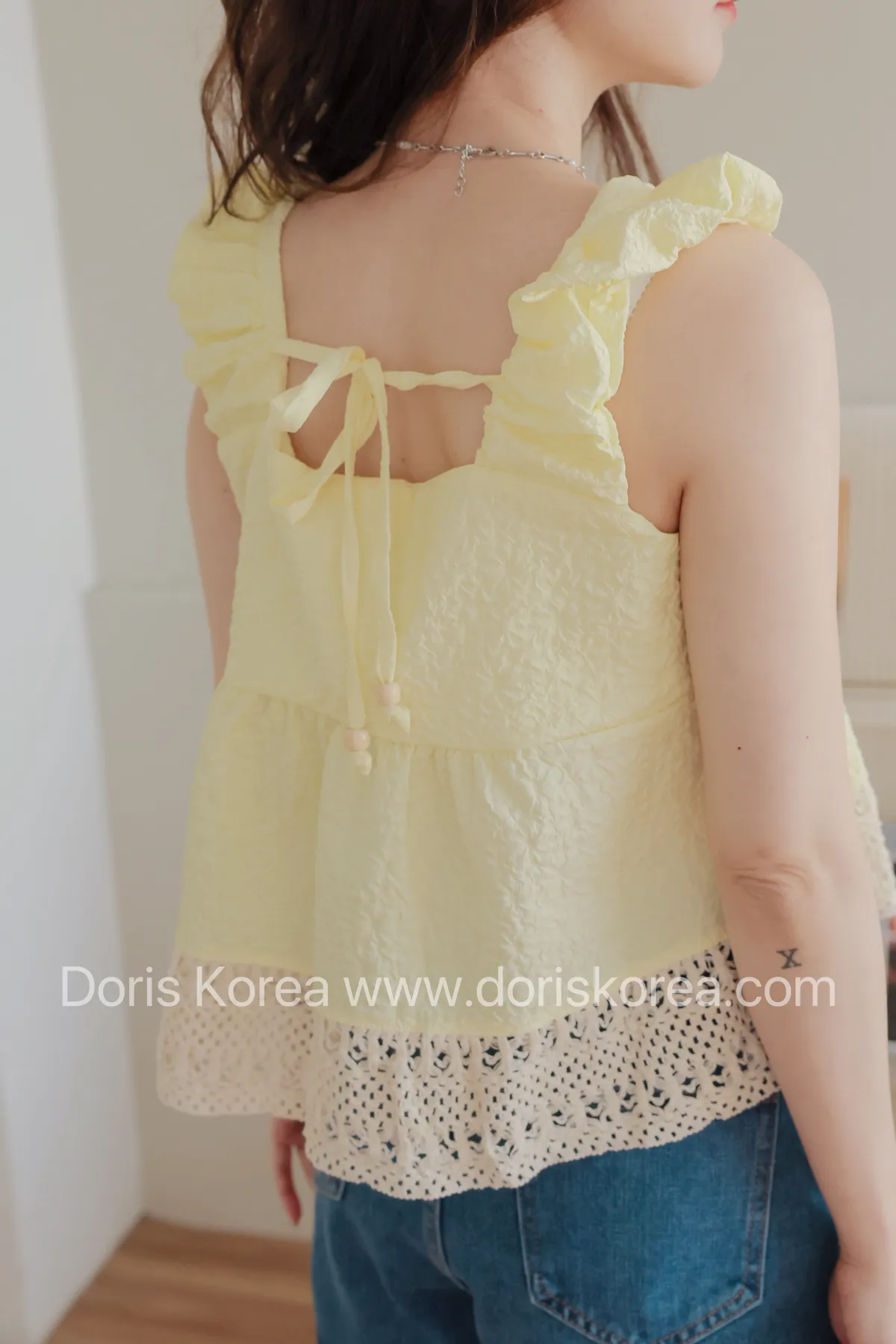後綁帶下布蕾絲背心(黃)