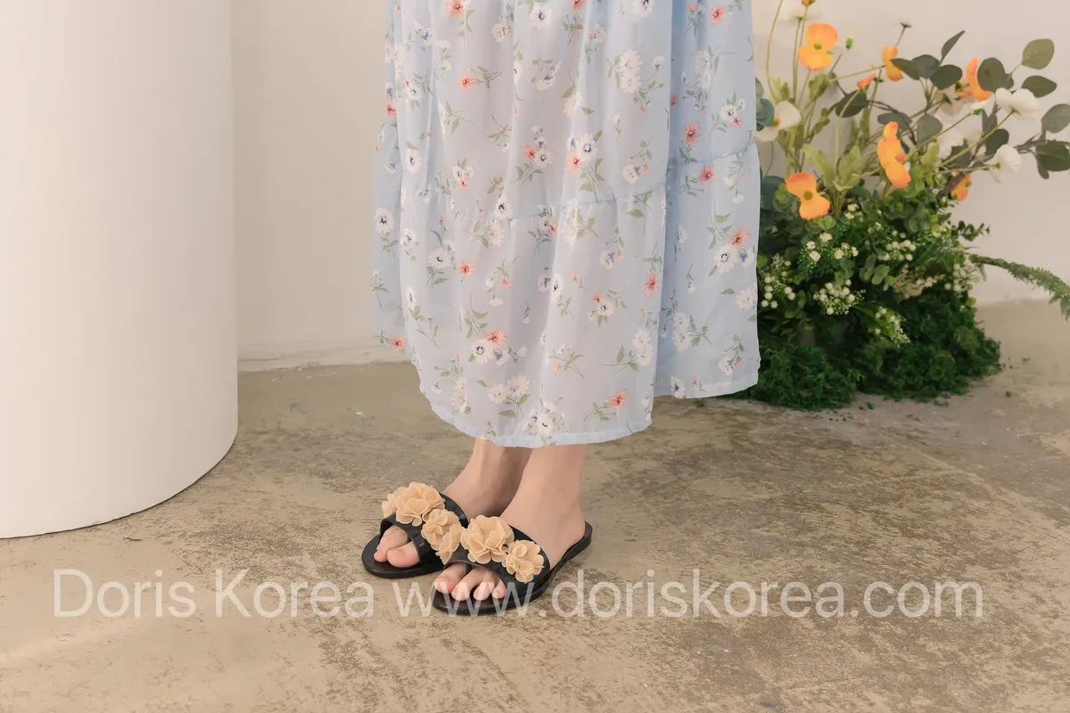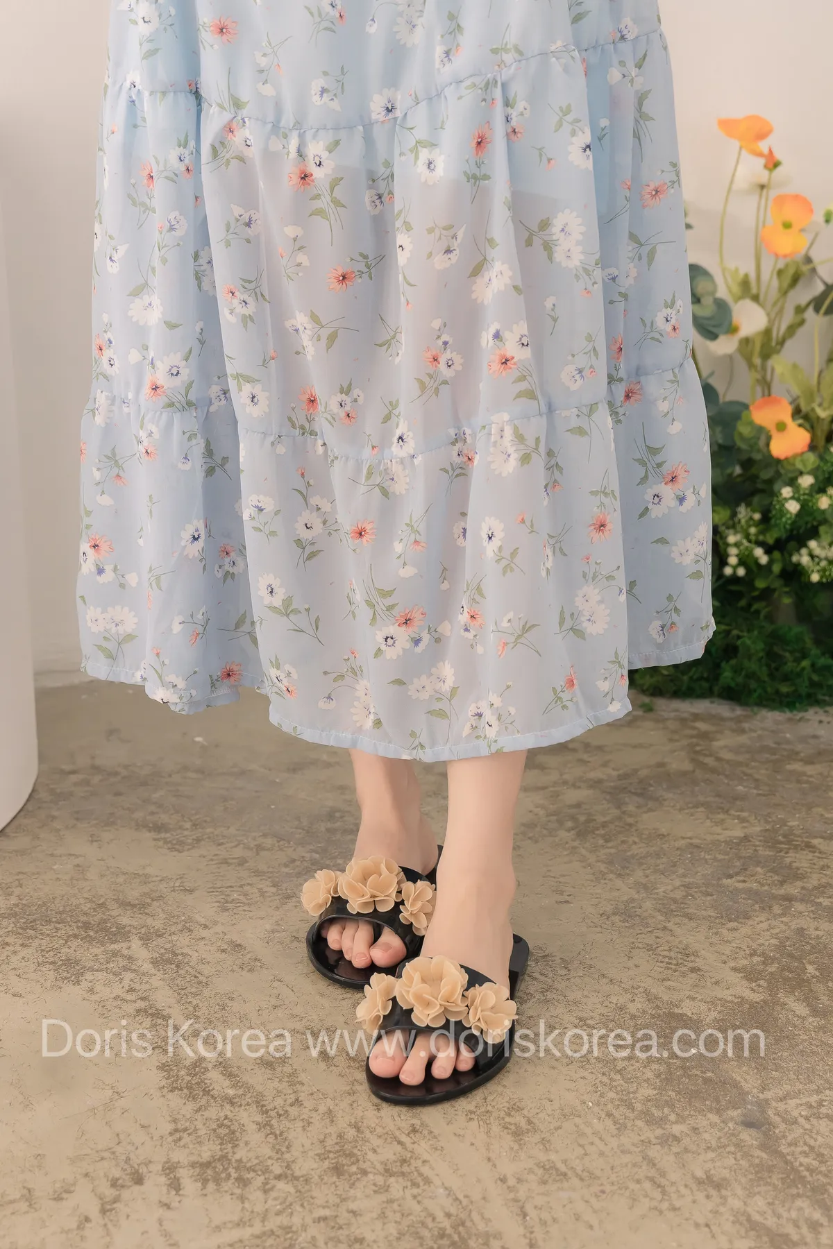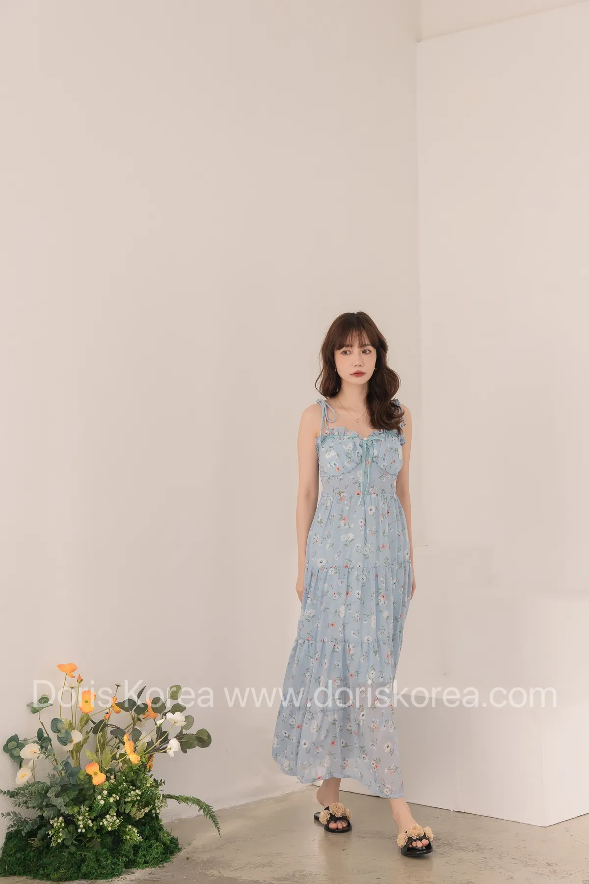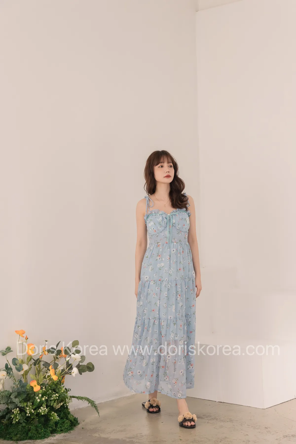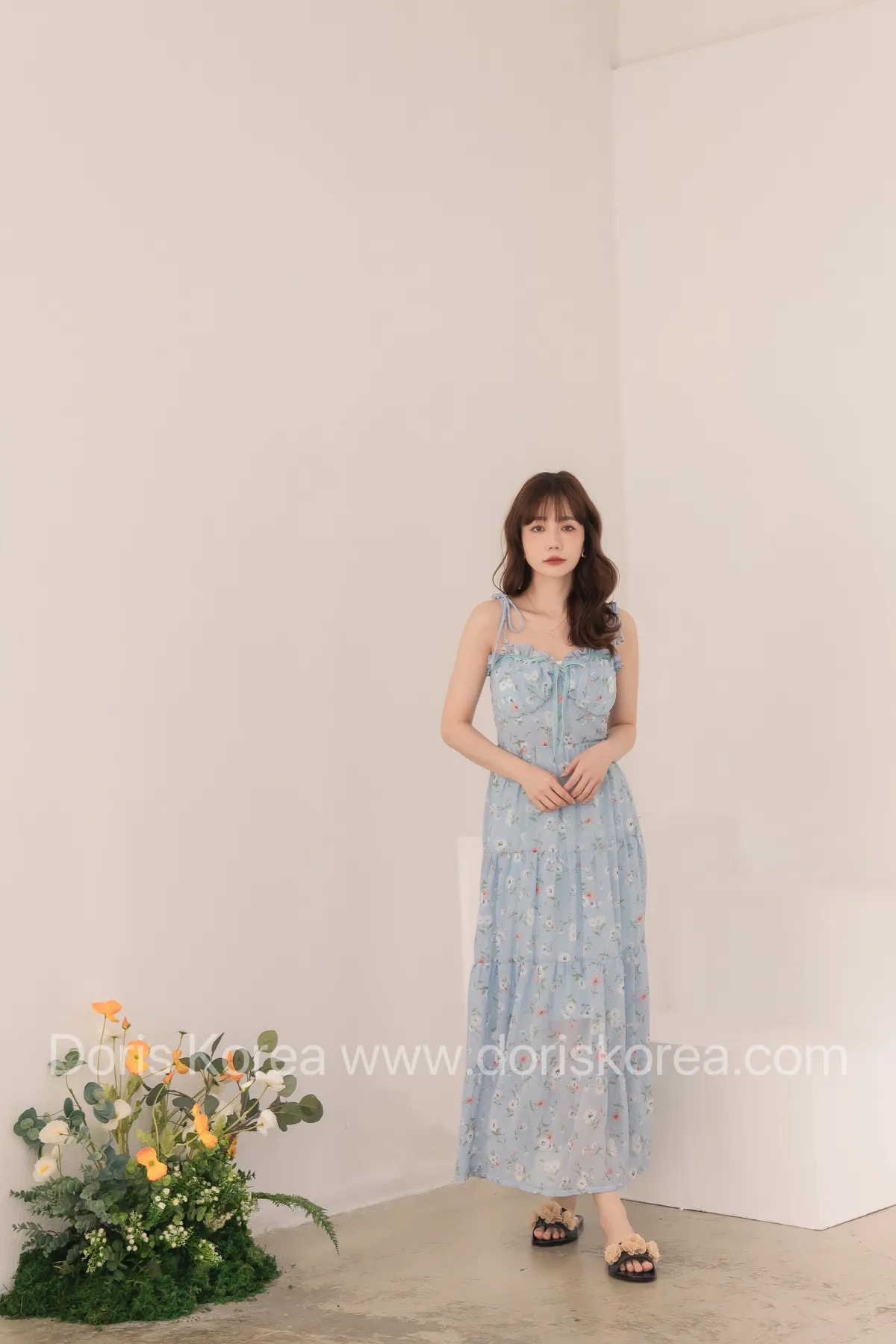 接燈芯絨緞帶花邊細肩洋裝(藍)