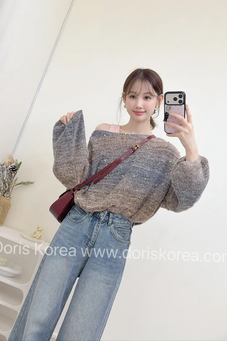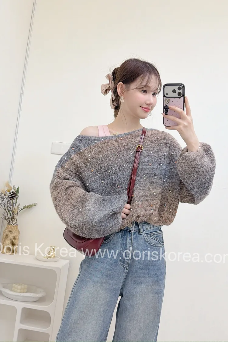 漸層珠珠毛衣+背心