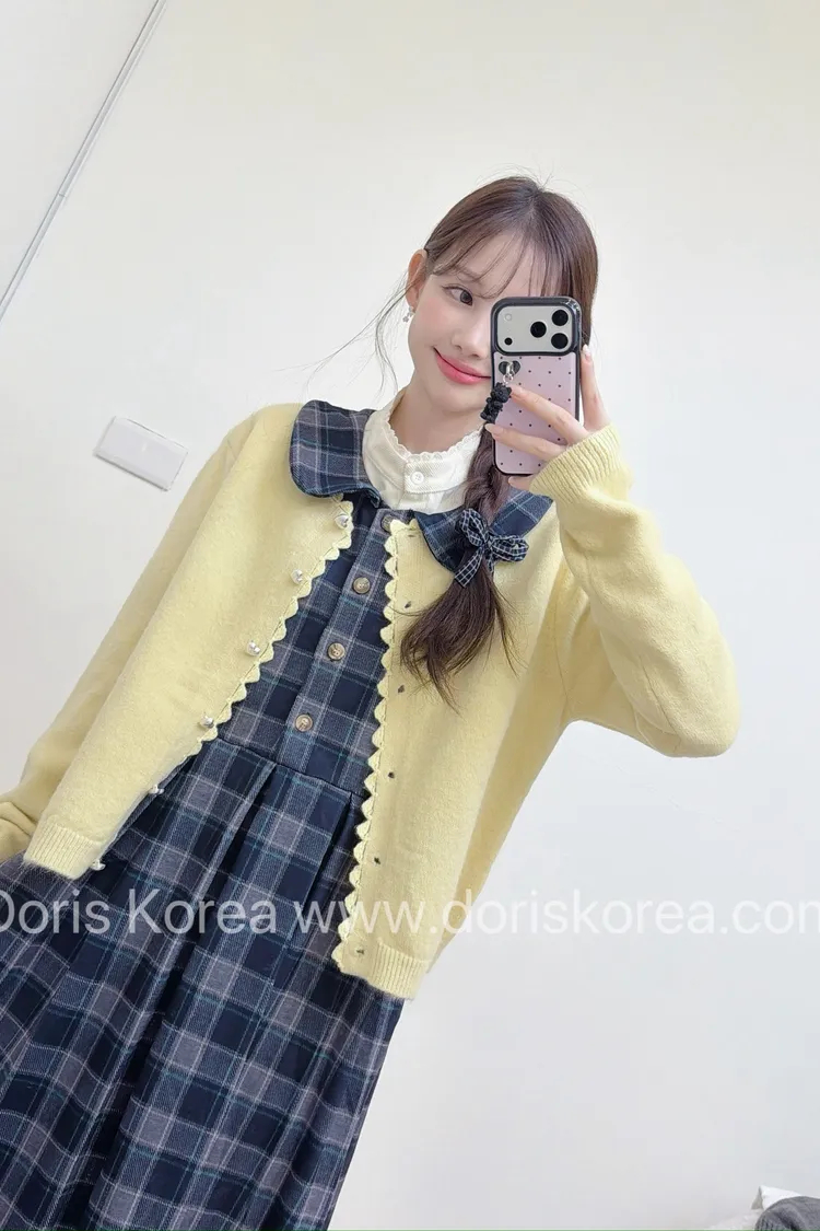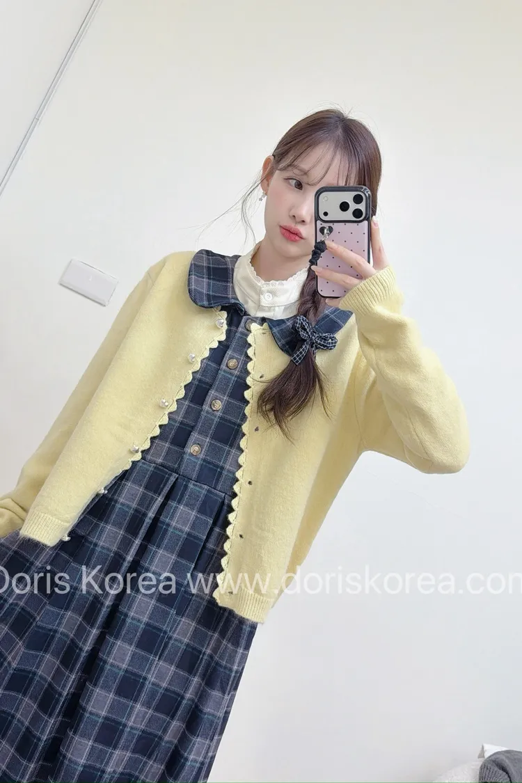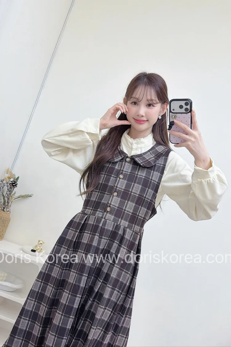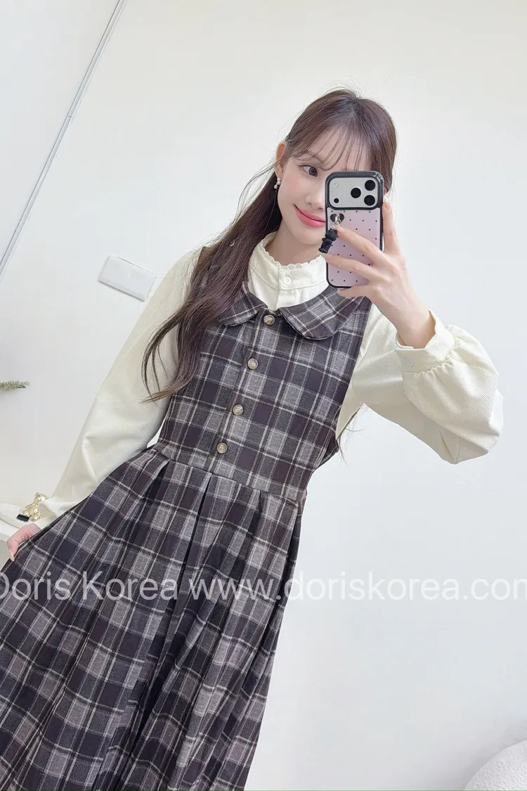 加厚格紋背心洋裝+高領