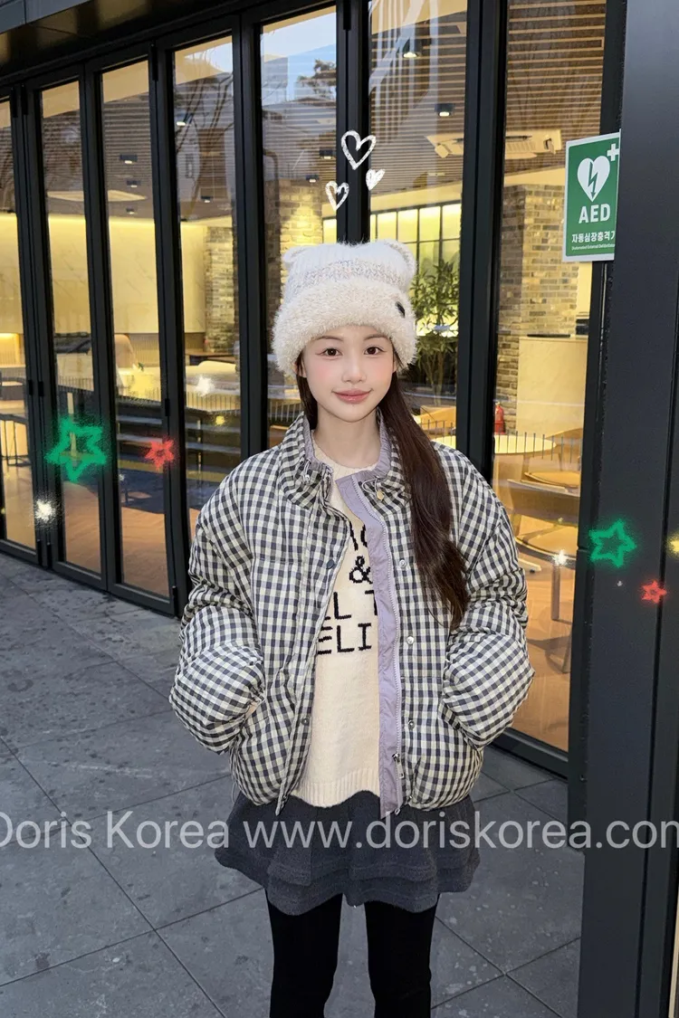 格紋立領鴨絨外套(藍紫)