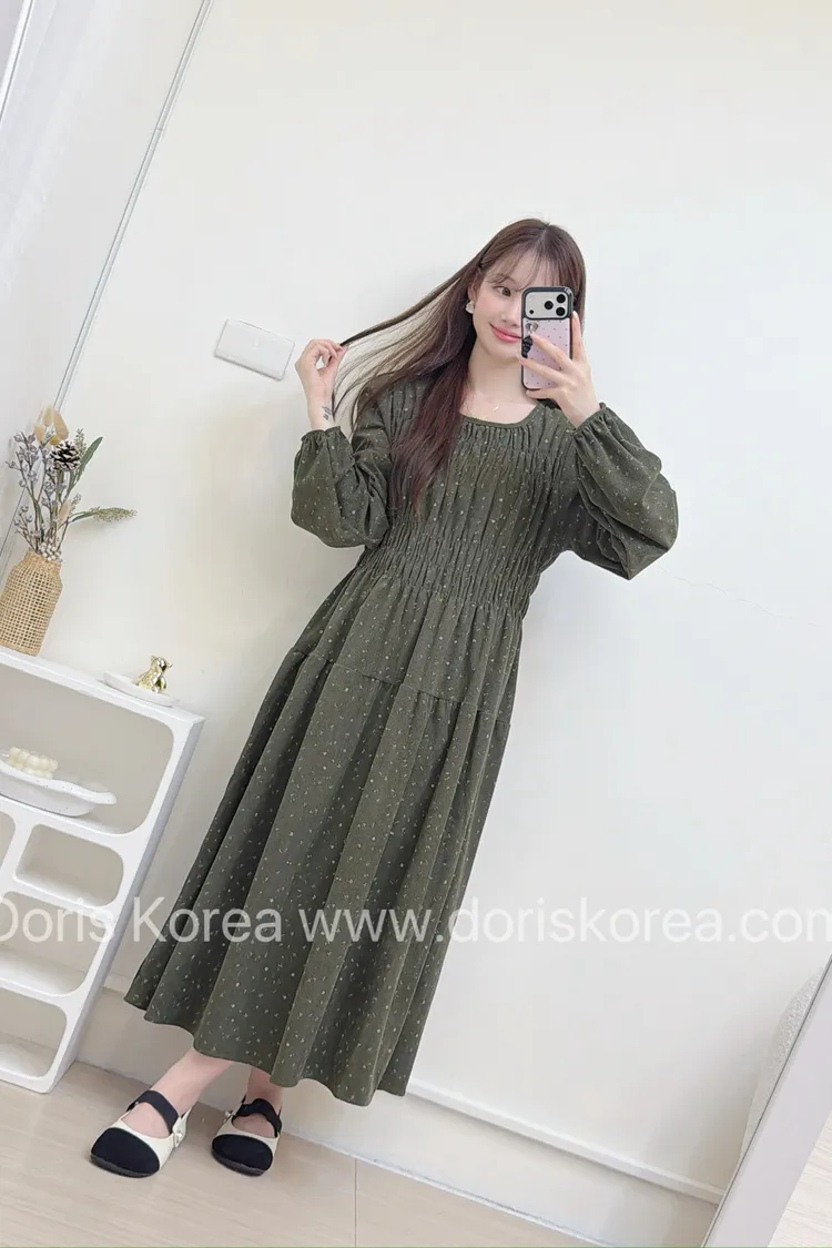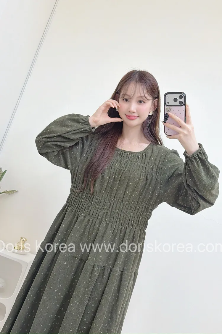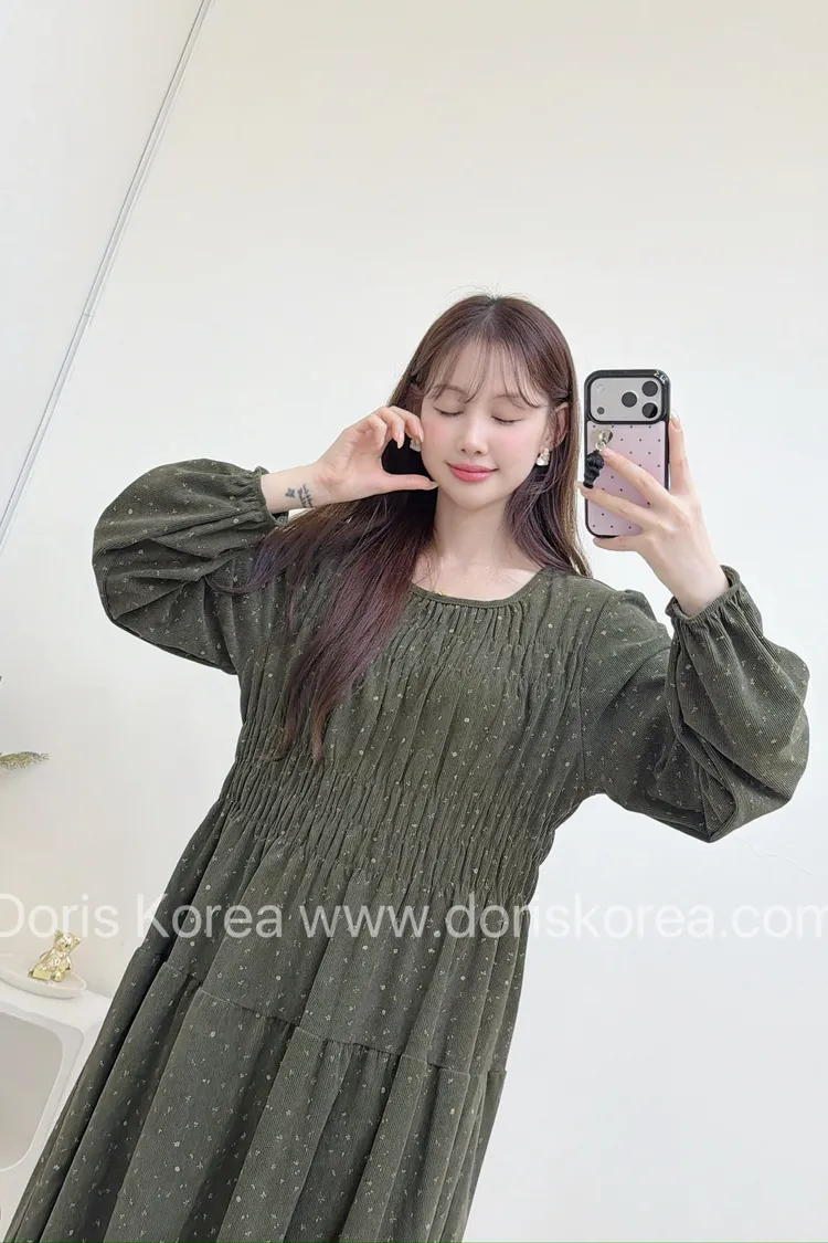 迷你小黃花洋裝(綠)