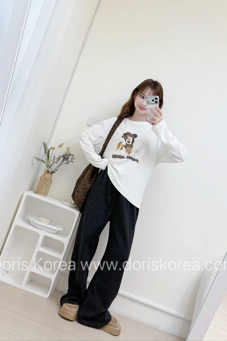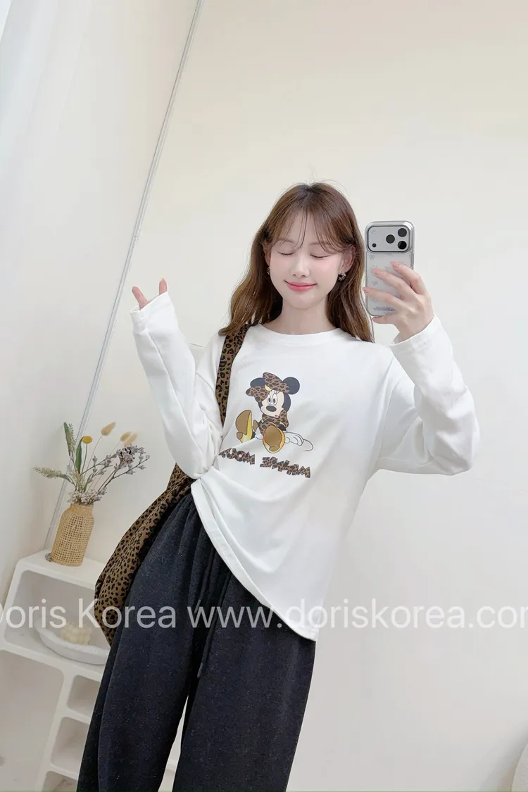 米妮磨毛T+豹紋包